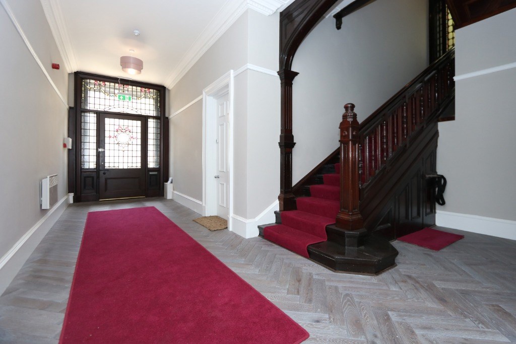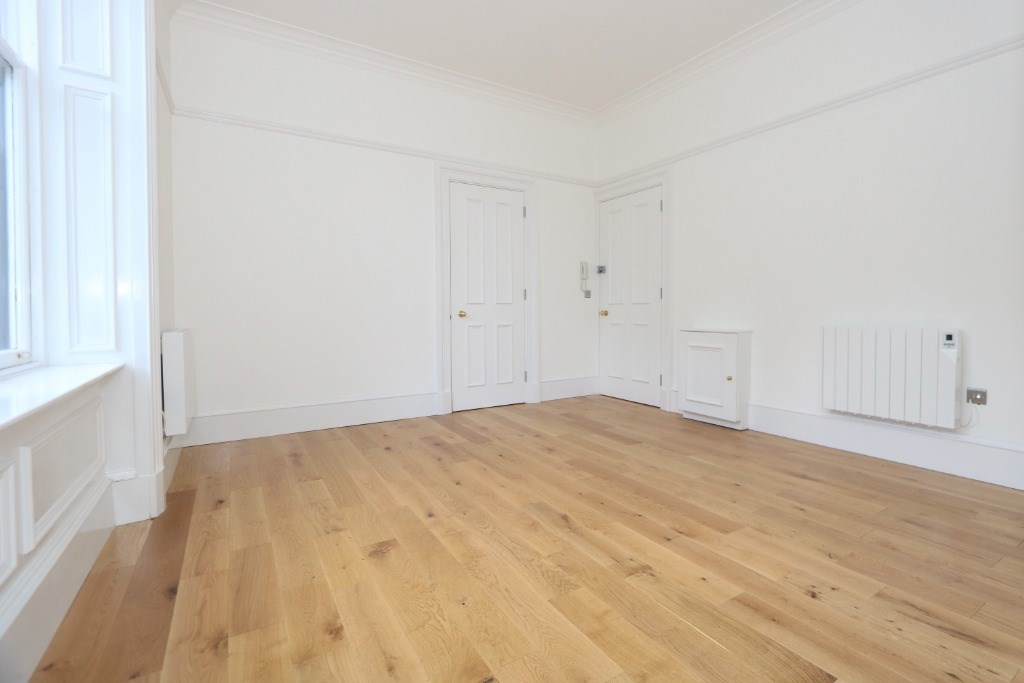 The property accessed through a stunning communal hallway and staircase, comprises a large bright rear facing lounge that houses a sitting area and bed and also benefits from fitted wardrobes offering great storage space. The lounge leads off to a modern fitted kitchen with dining area, which in turn leads onto a bathroom with three piece white suite.