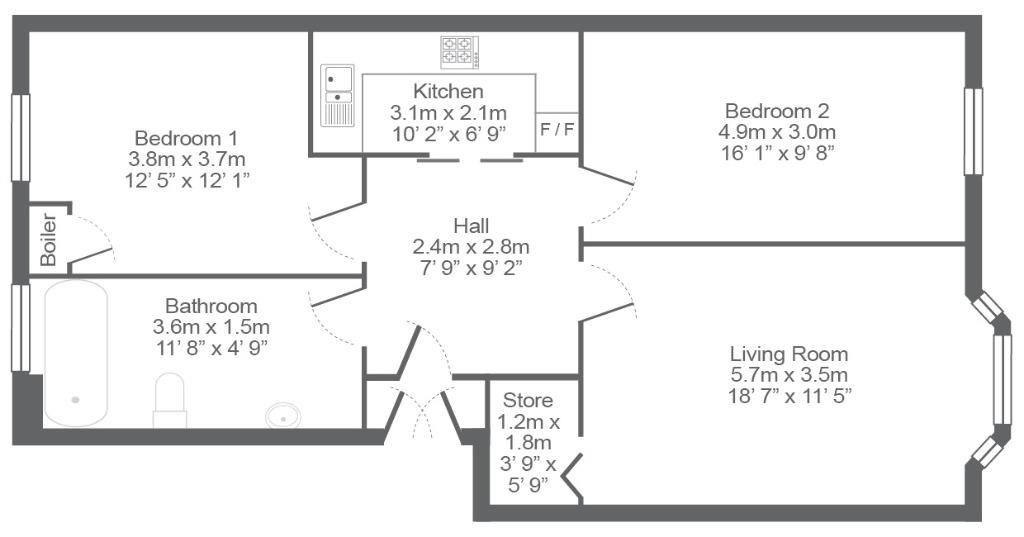 Access to the building is granted via secure entry system and the property is located on the third floor accessed only via stairs. Internally, the property comprises of welcoming reception hallway, spacious front facing bay windowed living room with feature fireplace and electric fire as well as a good sized storage cupboard, modern internal kitchen with ample floor and wall units as well as appliances including fridge freezer, washing machine, dishwasher, gas hob, electric oven, microwave and wine fridge, two good sized double bedrooms and finally the bathroom with white ceramics and a mains powered shower over the bath.