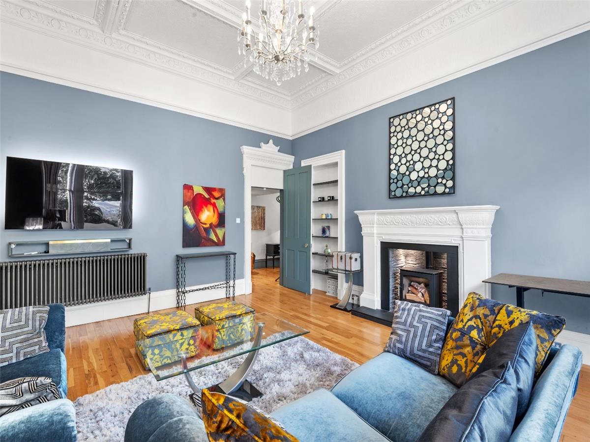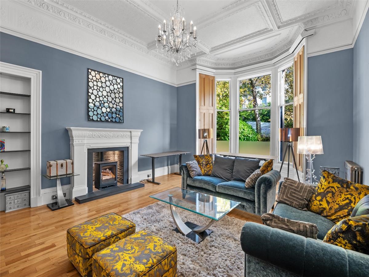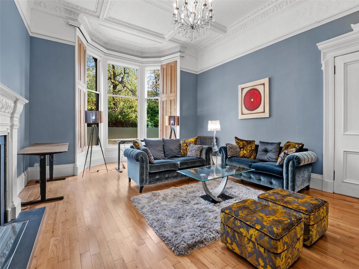 The property is set back from Victoria Circus in one of the most sought-after parts of the Dowanhill area in the heart of Glasgow's west end. As one of only four residences, it forms part of Ramoyle, a magnificent and grand, detached blonde sandstone villa.