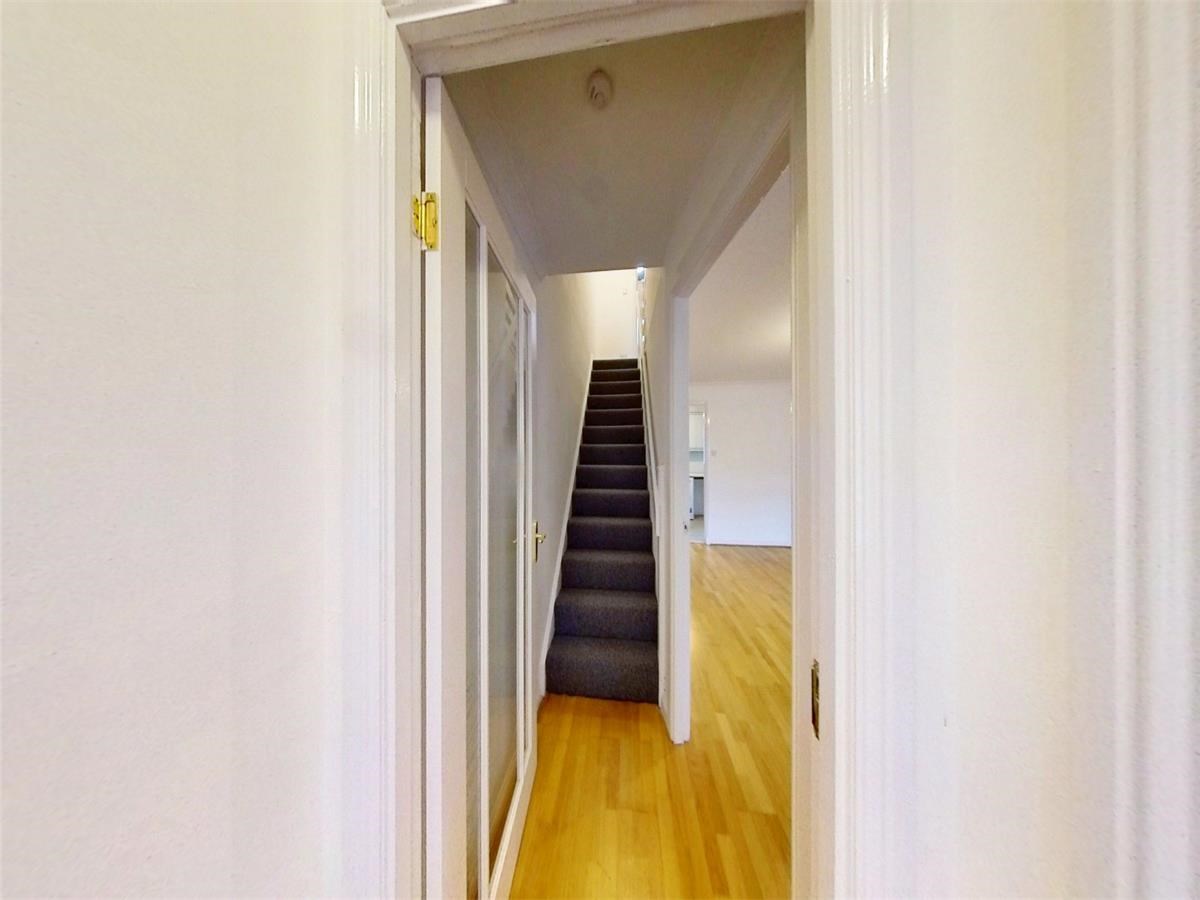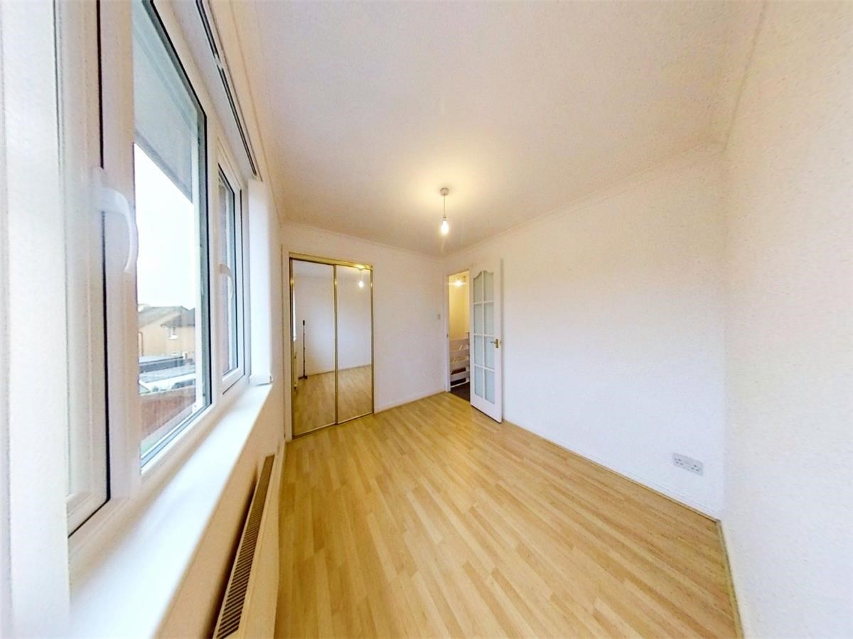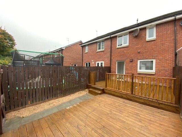 Internal accommodation comprises: Entrance hallway with storgae cupboard, bright and spacious lounge, stylish kitchen with ample base and wall mounted units and access out to the low maintenance rear garden. On the upper level you will find two generously sized bedrooms both with fitted wardrobes and a modern bathroom in white with electric shower.