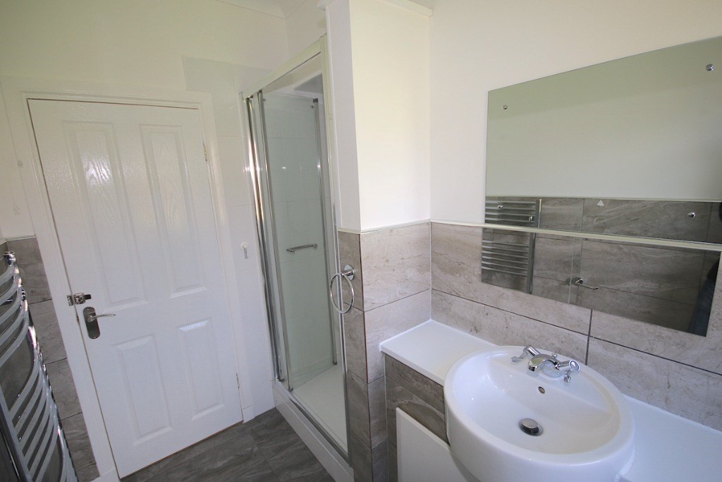 Completing the accommodation, the shower room is fitted with a modern white suite, an electric shower, tiled floor and tiled splashbacks.