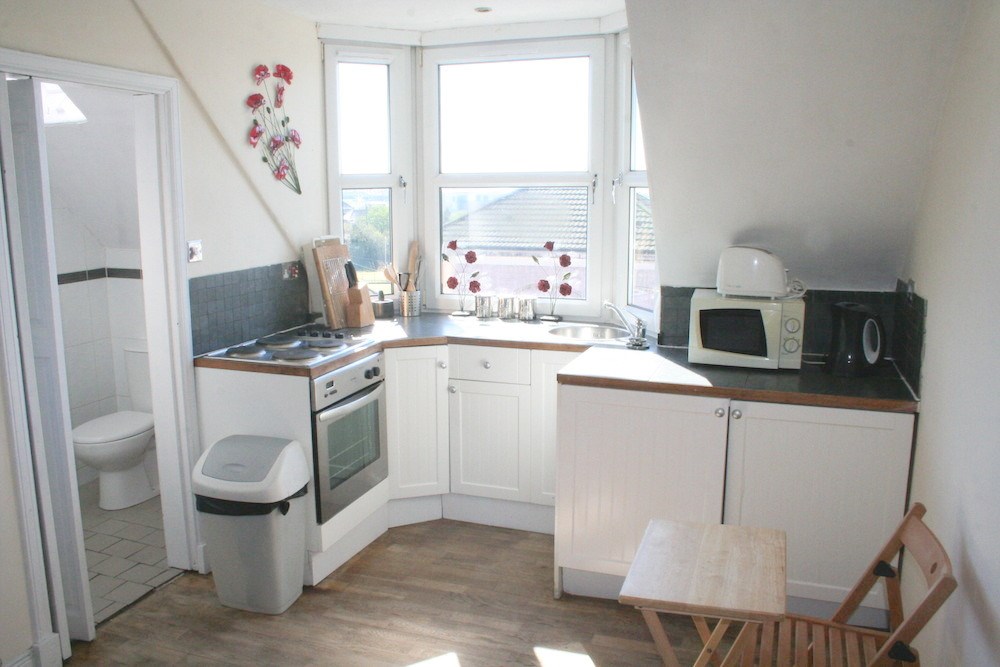 This furnished studio flat with an additional room that could be used as a bedroom and is located on the second floor of a traditional tenement. The property comprises a bedroom, lounge with open-plan kitchen and bathroom. The kitchen has all necessary appliances like fridge, microwave, oven & hob, and a washer/dryer.
