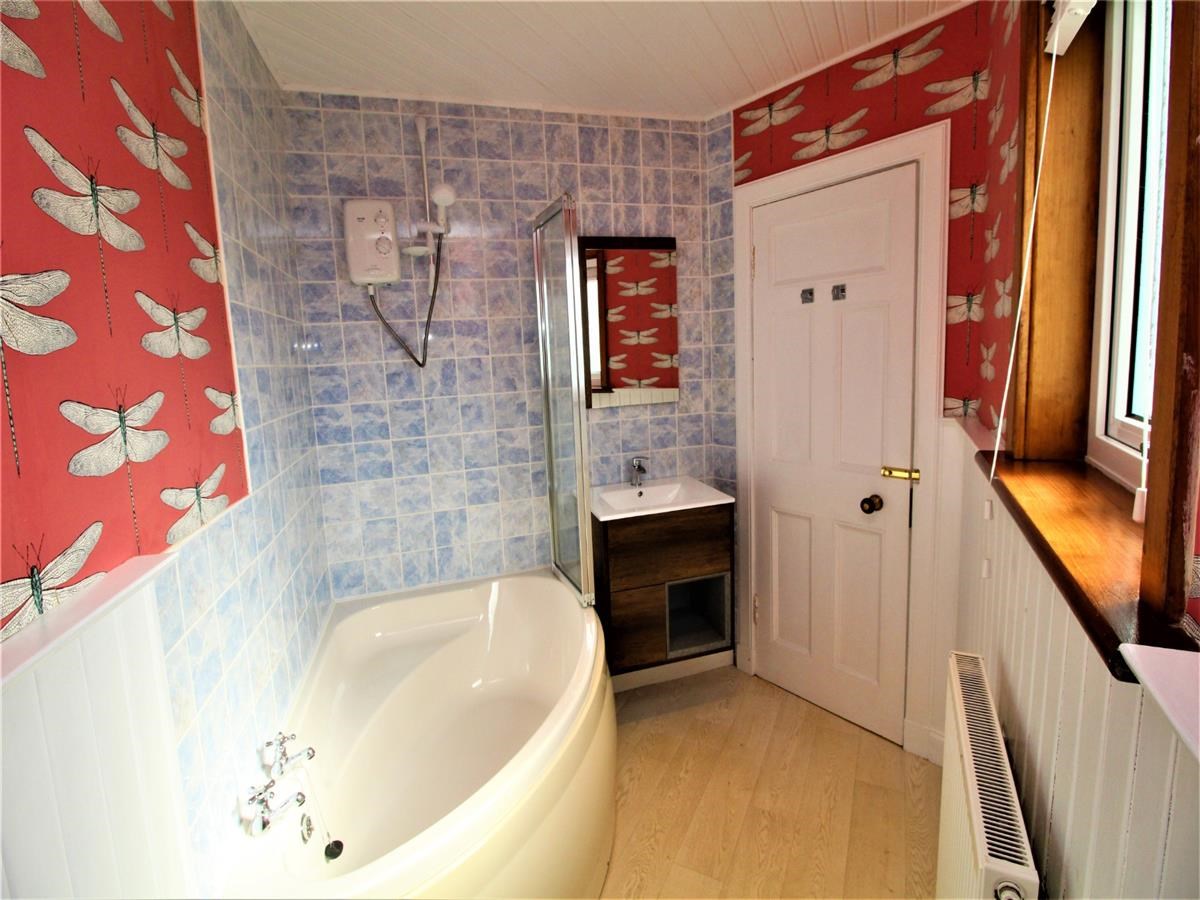 This south facing property has been finished to a high standard with timber varnished floors throughout and consists of: a spacious lounge with brick built fire surround with an efficient Nordpeis wood burner and spectacular views of the water and the community gardens. A modern styled kitchen with wall and base kitchen units with integrated electric oven and gas hob and yet more amazing views of the water and hills in the distance. Two double bedrooms with original cast iron fire surrounds and spectacular water views. The family bathroom is spacious with a corner bath with electric shower above, toilet and modern wash-hand basin in a vanity unit.