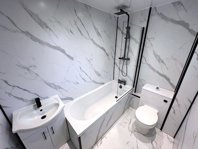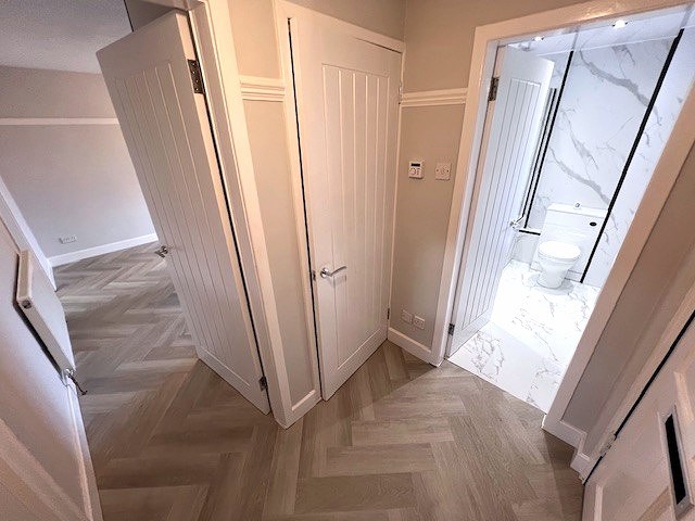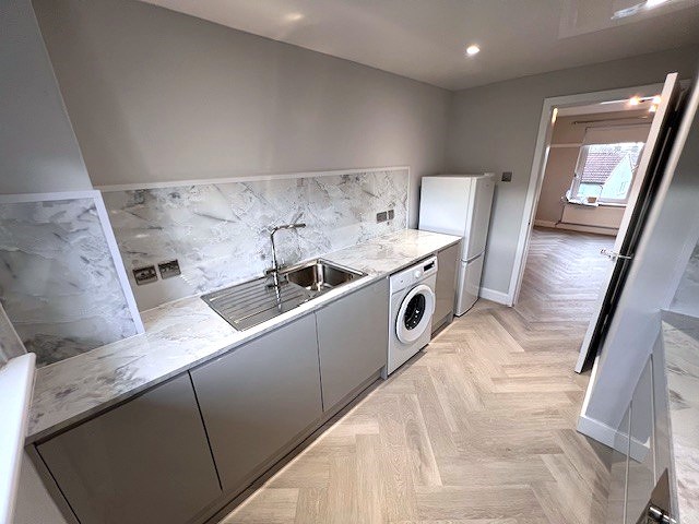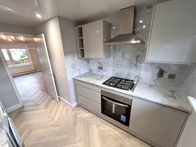 Fully Refurbished to a High Standard Throughout including new LVT Herringbone Flooring, Fresh Neutral Decor, and Modern Fixtures & Fittings throughout. Brand New Contemporary Fully Fitted Kitchen with high-gloss units, all brand new appliances, luxury marble effect worktops & splashbacks. Brand New Luxury Bathroom featuring a sleek three-piece suite, rainfall shower over bath, and elegant marble-effect wall panels. Spacious Lounge with feature wall and large window providing plenty of natural light. Large Double Bedroom with fitted wardrobes and fresh neutral decor. Shared garden area to the rear with drying facilities. Gas central heating with Brand new boiler and Radiators throughout Double Glazing. Well kept common close.