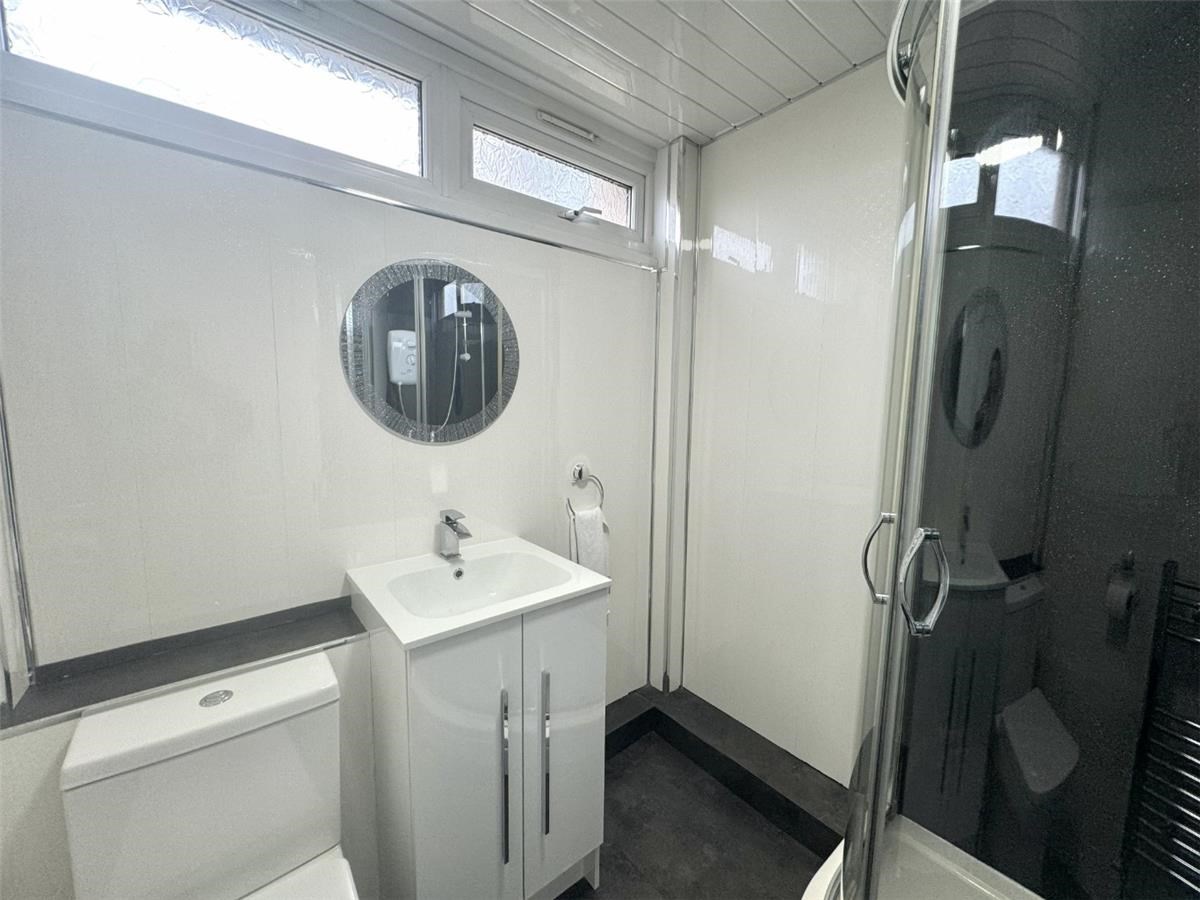 The large dining lounge features carpet flooring and fresh decoration with patio doors leading to the well-maintained sun balcony. The bespoke modern kitchen features a variation of wall and base units with contrasting worktops. Appliances are included which consist of fridge/freezer, dishwasher, oven with separate grill compartment, ceramic hob, and extractor fan. The bathroom features a two-piece white suite with under sink vanity unit, further benefits include a separate shower cubical with new electric shower.