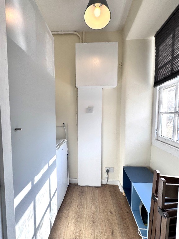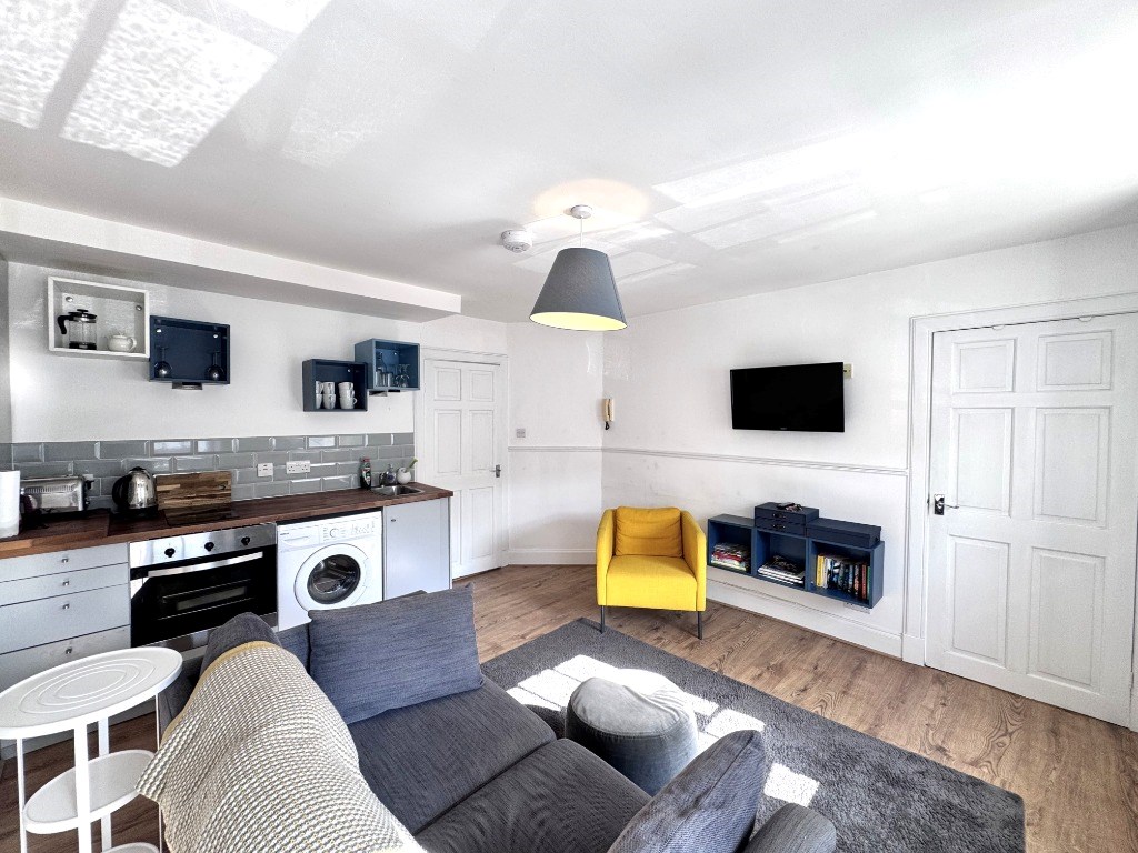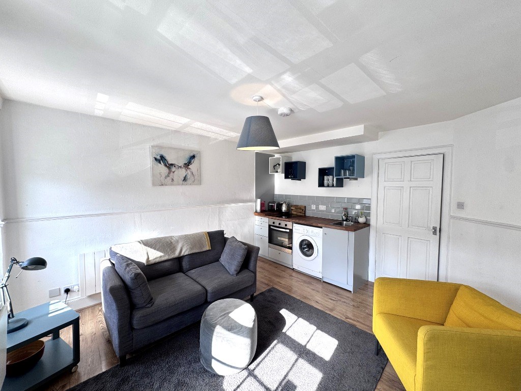 The property is located on the first floor of a traditional tenement and is comprised of a south facing modern kitchen/living room with a utility area or storage cupboard, a double bedroom to the rear and a modern bathroom.