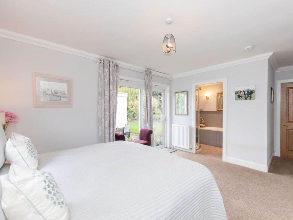 The house is set on one level and is comprised of a main bedroom with patio doors to the garden, built in wardrobes and an en-suite bathroom with separate shower and bath. Bedroom two has built in wardrobes and a Jack and Jill shower room. The third bedroom is also a double and has patio doors to the garden.