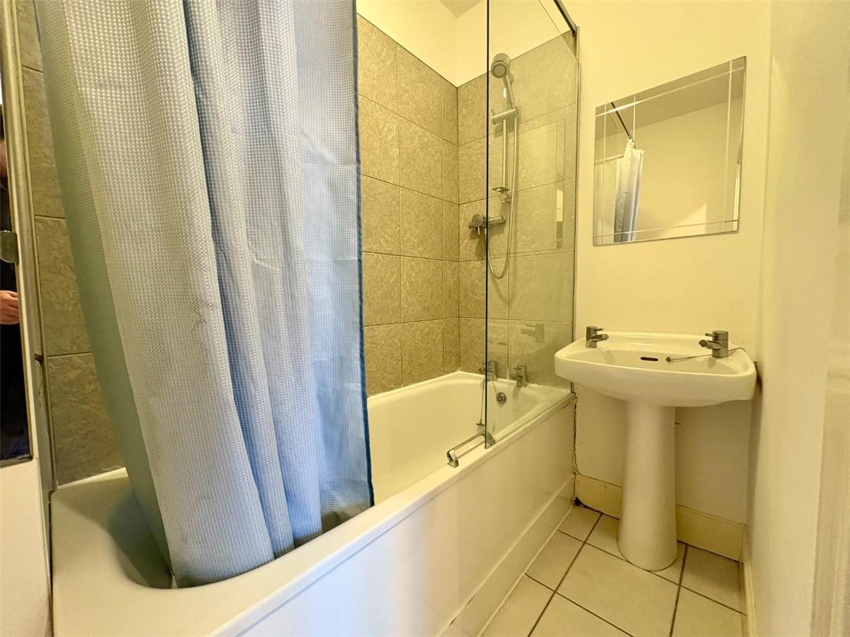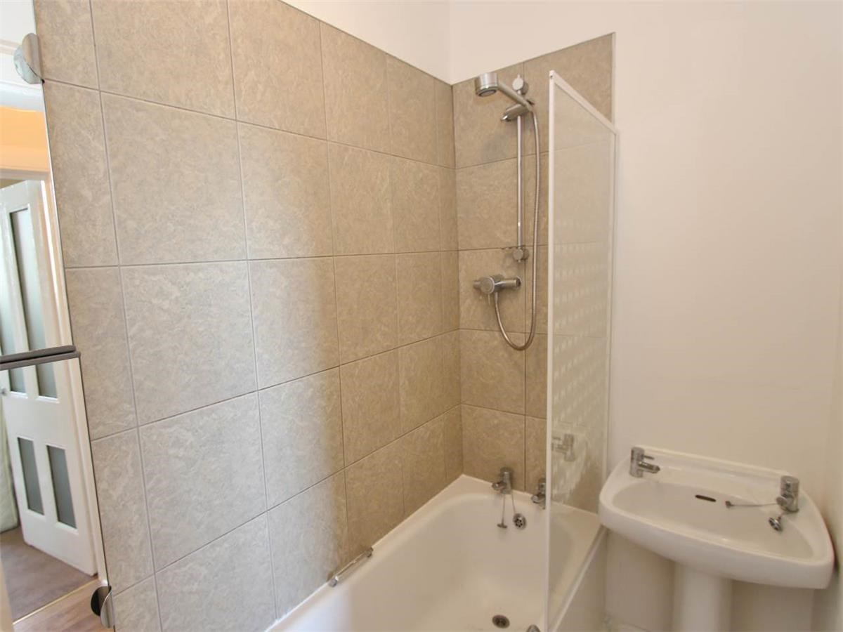 - Bathroom with shower over the bath
