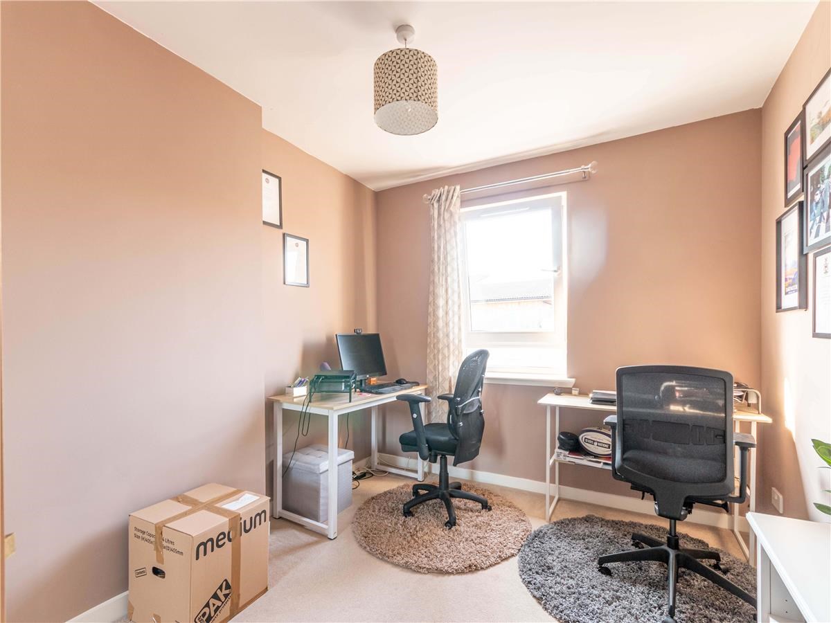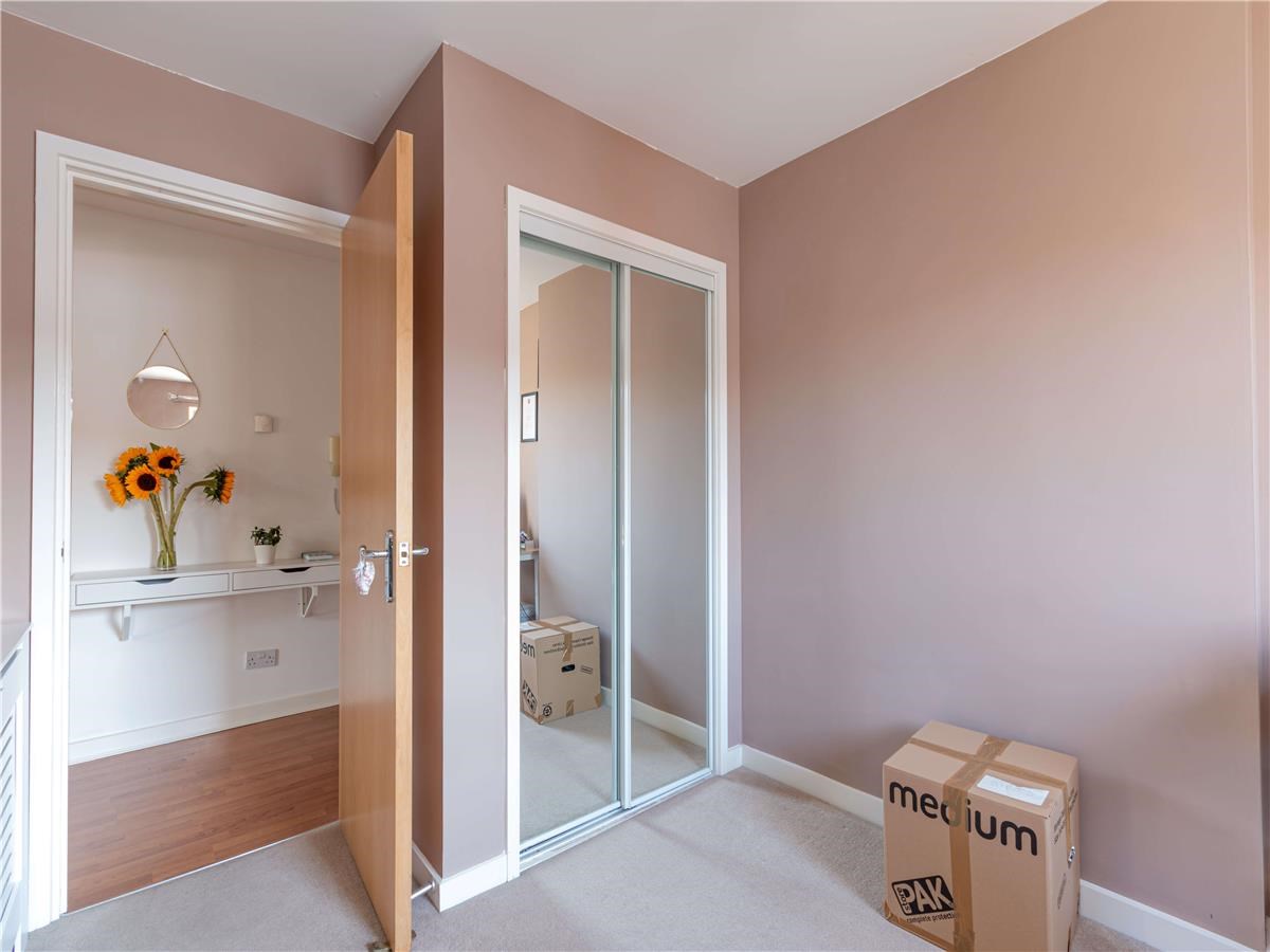 ~Second double bedroom, currently used as an office, with carpeted flooring and built in wardrobes