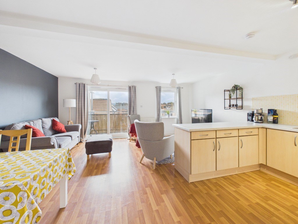 This property comprises of: a welcoming entrance hall with storage cupboard; a spacious principal bedroom with double bed, built in wardrobes and ensuite featuring shower over bath; good size second bedroom with double bed and storage cupboard; main bathroom with shower cubicle and an open plan kitchen-dining-living space with sliding doors which open onto a private balcony with views out towards Arthur's seat and Calton Hill. The kitchen benefits from fitted with appliances such as fridge-freezer, washing machine and gas hob.