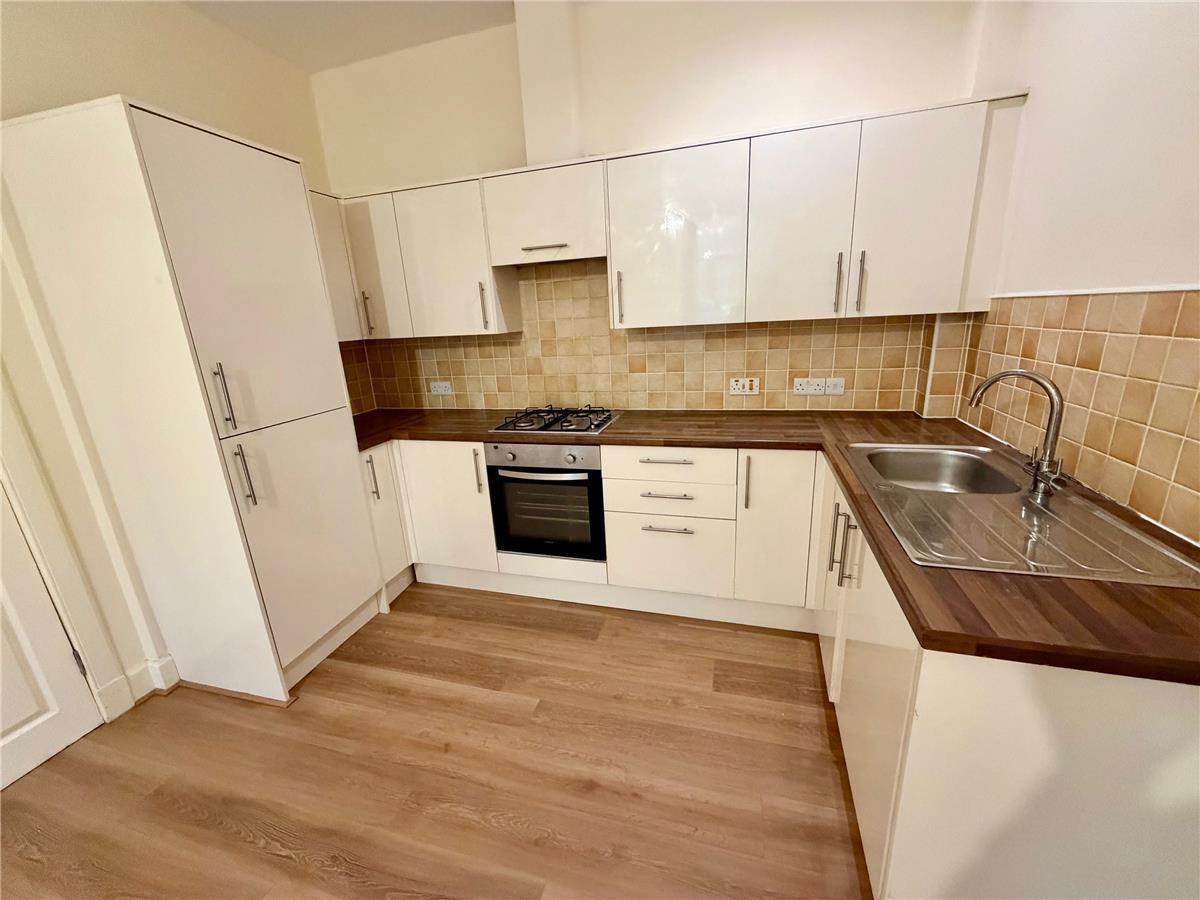 The one-bedroom property is situated on the ground floor of a well-maintained residential stair. Accommodation includes a modern kitchen with open plan kitchen-living space. Integrated appliances including a large fridge and freezer, electric oven, gas hob and washing machine. A double bedroom with fitted mirrored wardrobes overlooks the rear communal garden. The bathroom includes bath, WC, wash hand basin, shower over the bath and shower screen. A cupboard in the entrance hall provides storage space.