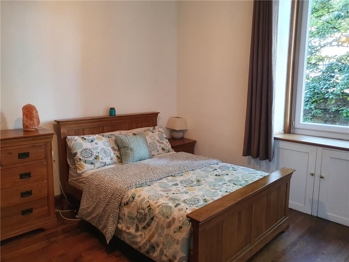 ~Generously-sized double bedroom with wooden flooring and stylish furnishings