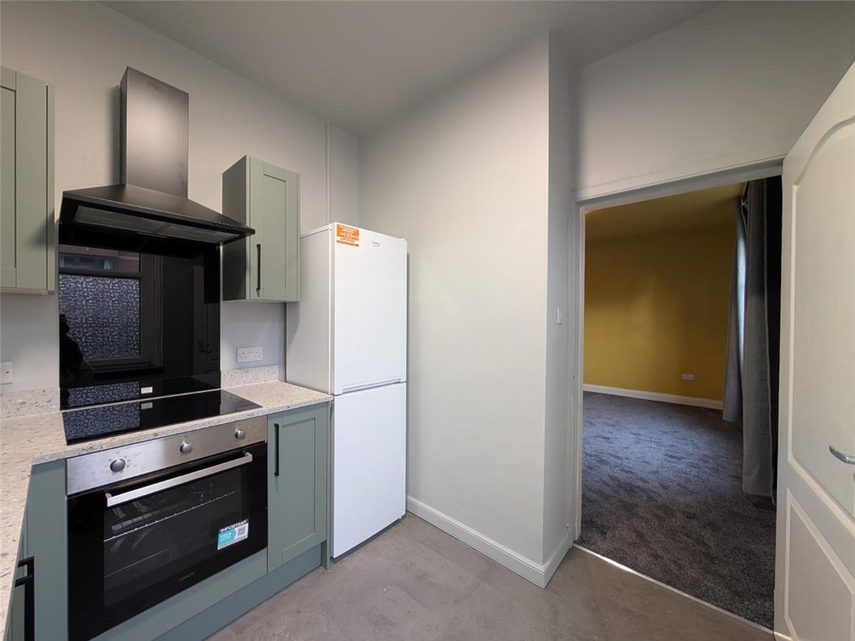 The accommodation comprises a welcoming entrance hallway with a useful storage cupboard. The generously proportioned lounge features double window overlooking quiet street and provides access to the new, fitted kitchen. The modern kitchen is fitted with contemporary base and wall units and includes an oven, induction hob with extractor hood, washing machine, and fridge/freezer.