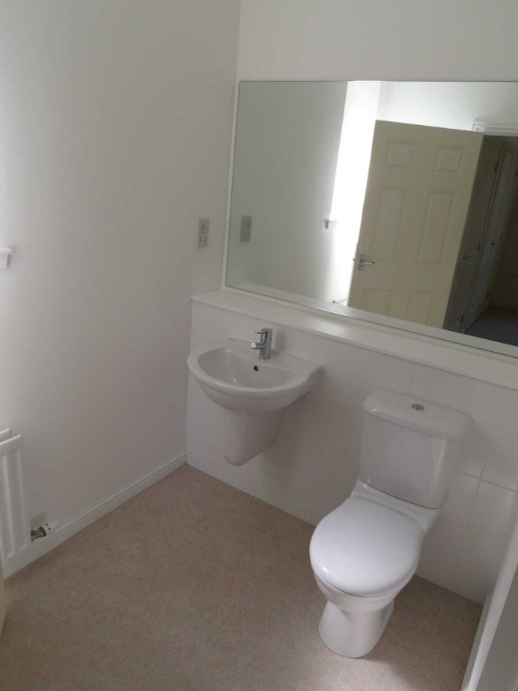 Generously sized bathroom, attractively fitted with a three piece suite in white with chrome taps and fittings, comprising w.c.,w.h.b., and bath. Built in boiler cupboard. Extractor fan. C.H. radiator.