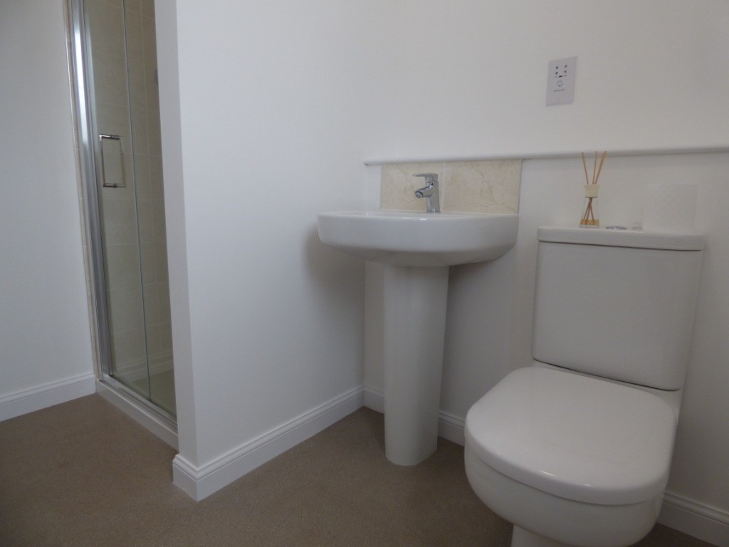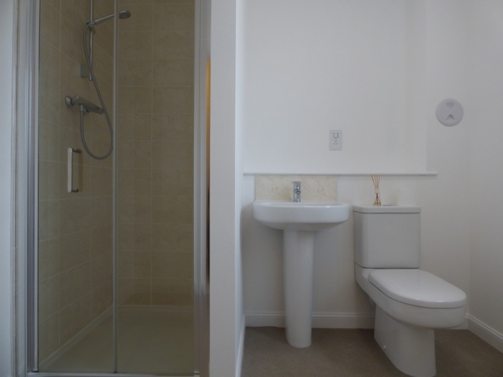Bathroom: Fully fitted white two-piece suite with shower. The bathroom has been elegantly finished with coordinating tiles around shower and sink area.