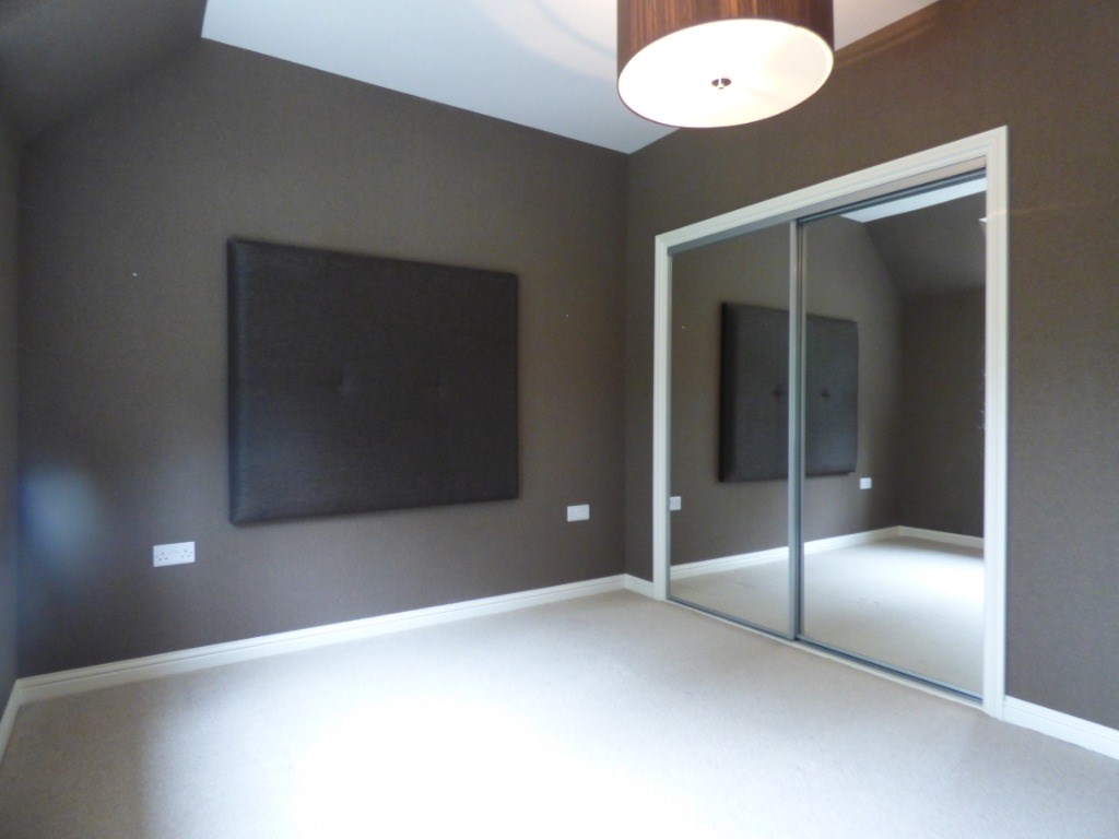 Bedroom Three. The double bedroom features tasteful décor, with fitted mirrored wardrobes and neutral coloured carpet.
