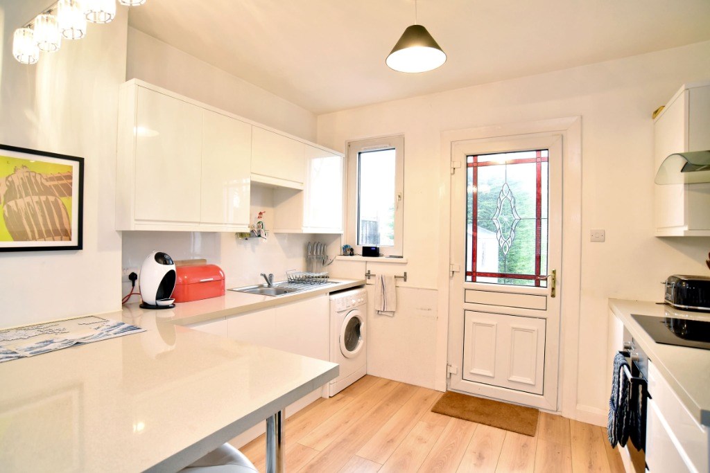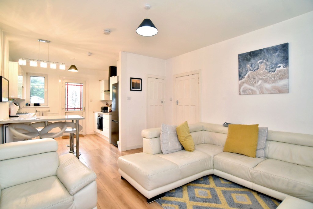The welcoming hallway gives access to all rooms. The well-proportioned open plan lounge and kitchen is flooded with natural light. The breakfasting kitchen has been finished with white base and wall units accented against white work surface which houses an integrated electric hob, oven and cooker hood. Two double bedrooms one of which has built in wardrobes both will comfortably fit double beds. A spacious and attractive bathroom with three piece white suite and overhead shower complete a fantastic property. The garden to the front is mainly bounded by stone walls and laid to lawn, incorporating a paved pathway and borders of established bushes and shrubs. Shared pathway to side. The sizeable garden to the rear is enclosed by fencing and established conifer trees, incorporating an extensive lawn, pathways and paved seating area. Ellon is a popular country town well served by a wide range of shopping facilities, public transport facilities, Primary and Secondary Schools together with an excellent range of local sporting and recreational attractions including a Community Swimming Pool, salmon and sea trout fishing in the River Ythan, an 18 hole Golf Course and the opportunity to enjoy lovely seaside walks at nearby Newburgh and at the Forvie Nature Reserve. The location is also within relatively easy commuting distance of Aberdeen and is extremely convenient for the Airport and the oil related offices at both Bridge of Don and Dyce.