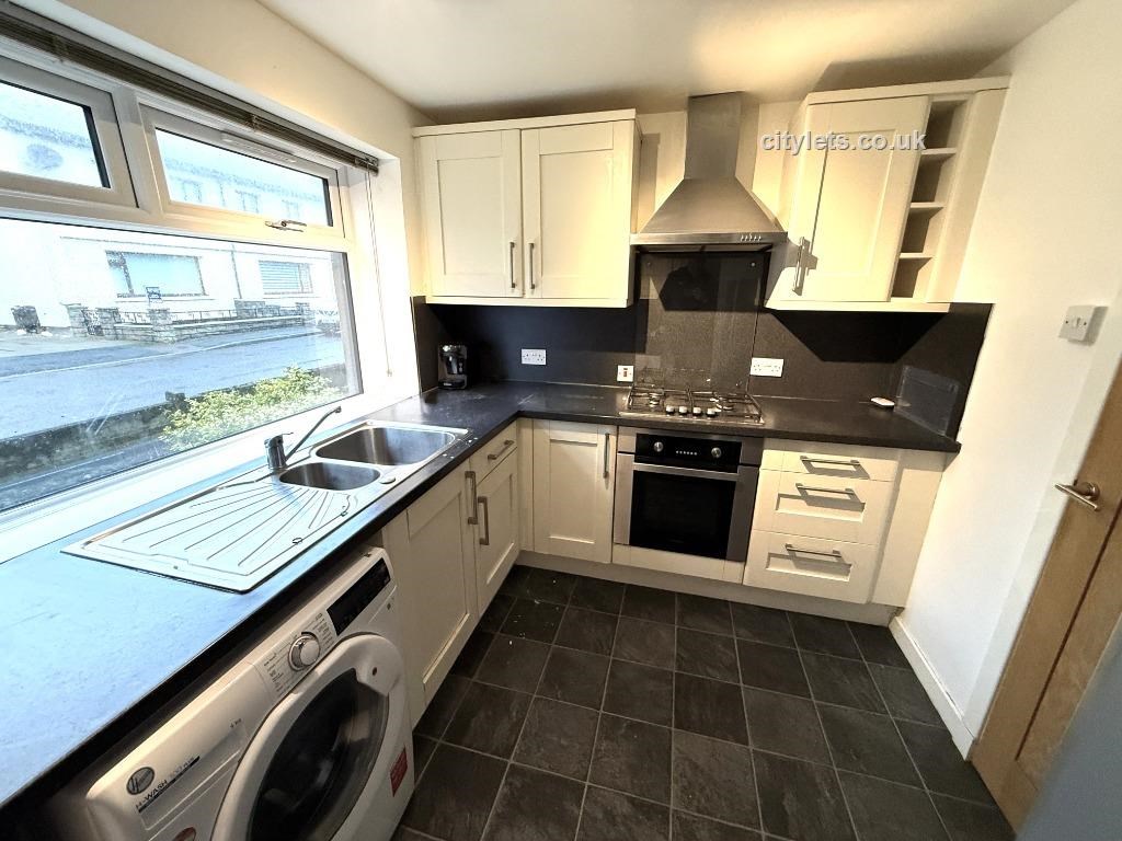Fitted with a range of base and eye level units incorporating a stainless steel with coordinating work surfaces. Gas hob with oven below and stainless steel hood above. Splashback tiling. Washing Machine, Fridge Freezer and Tumble Drier. Central heating radiator and vinyl flooring