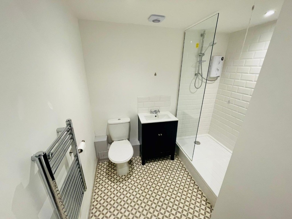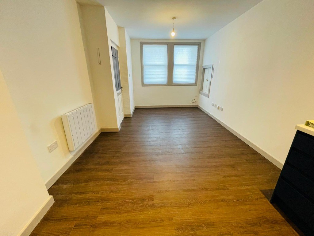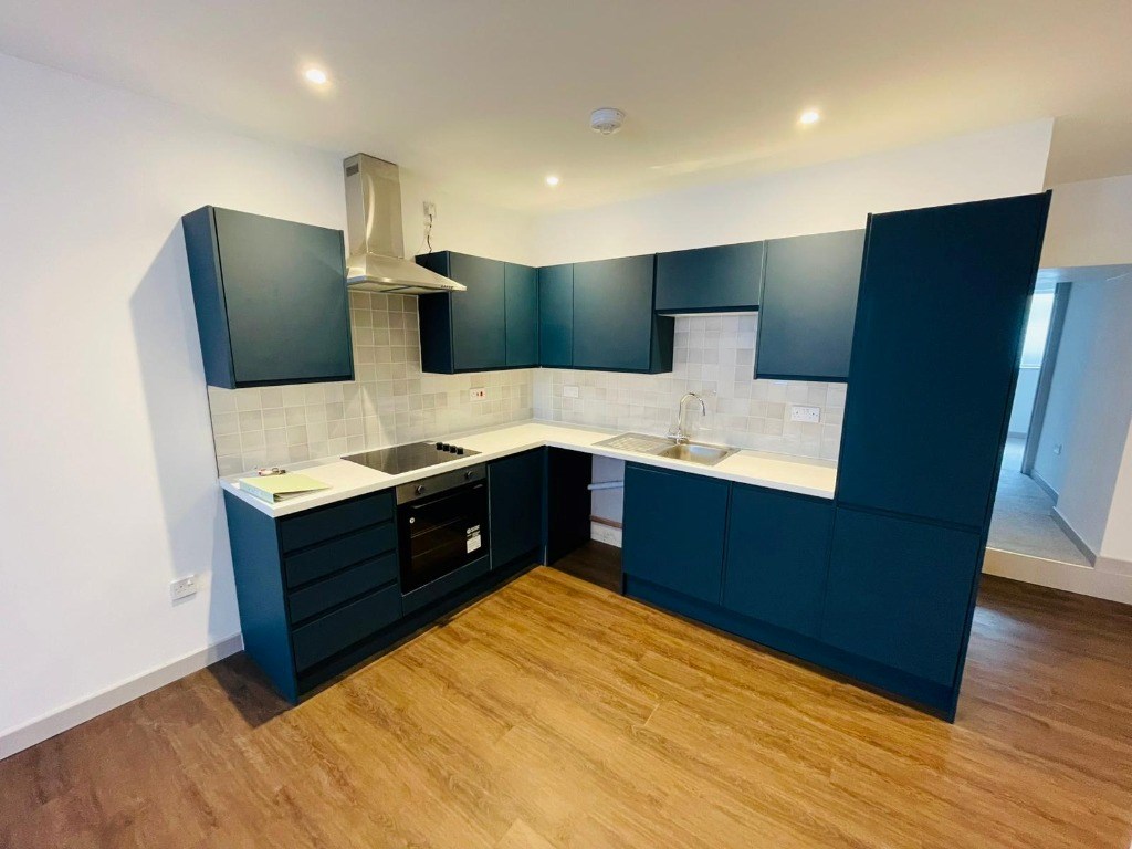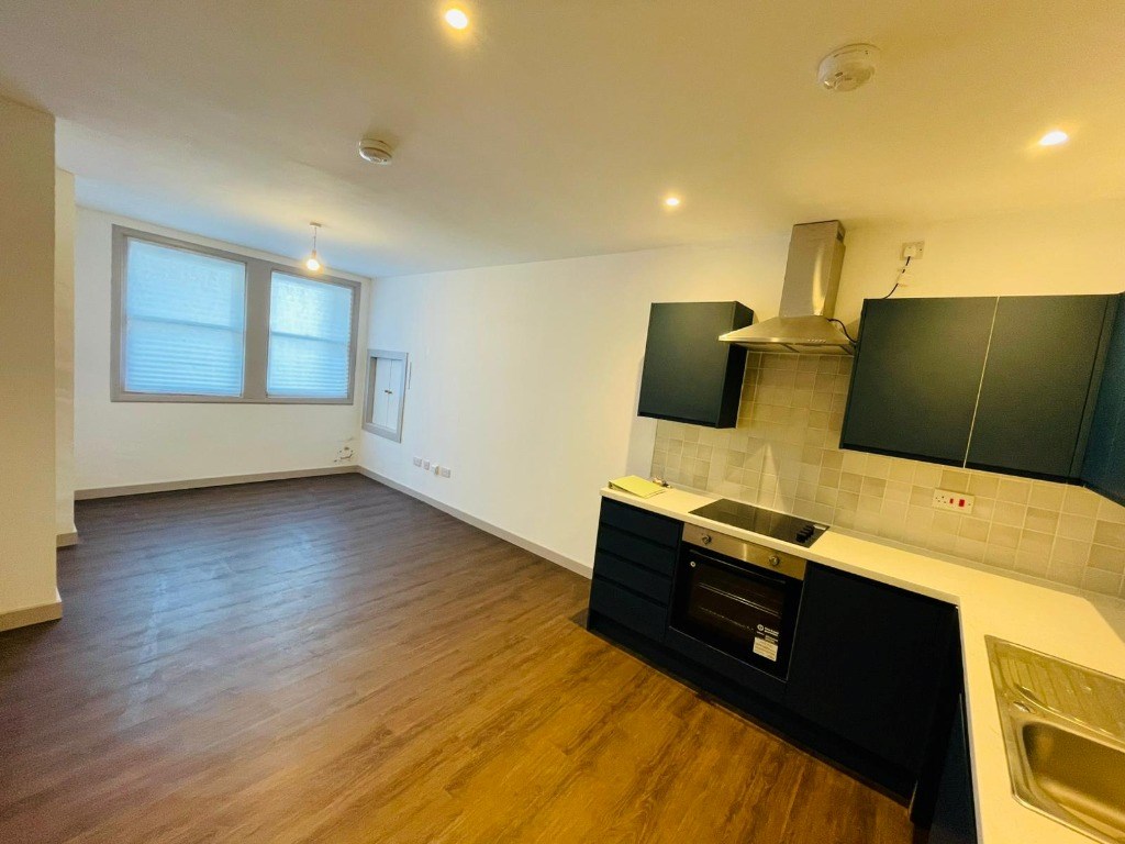There is a spacious open plan lounge with a stylish kitchen offering a large worktop, plenty of cupboard space, and a built-in electric hob and oven. The modern bathroom is a good size with a walk in shower. The wooden flooring in the living area gives a feeling of warmth and there is carpet in the bedrooms.