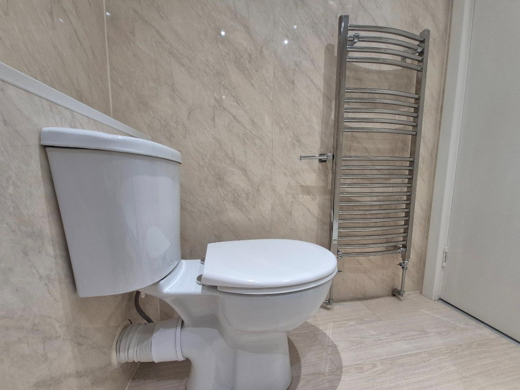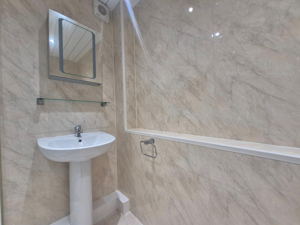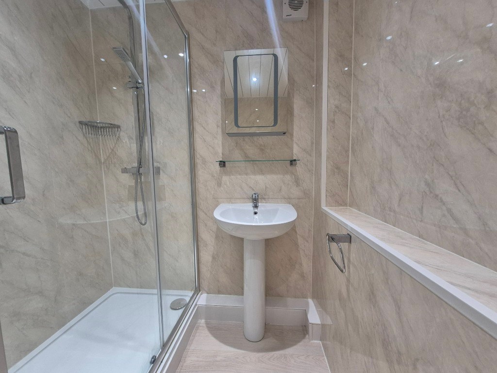 Good sized tiled bathroom with a Large shower.