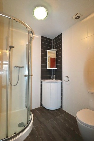 Internally, a private staircase leads to a bright and generously proportioned lounge with space for dining, creating a comfortable and versatile living area. The property further comprises a well-appointed kitchen, a modern shower room with thermostatic shower, and a double bedroom complete with fitted wardrobes.