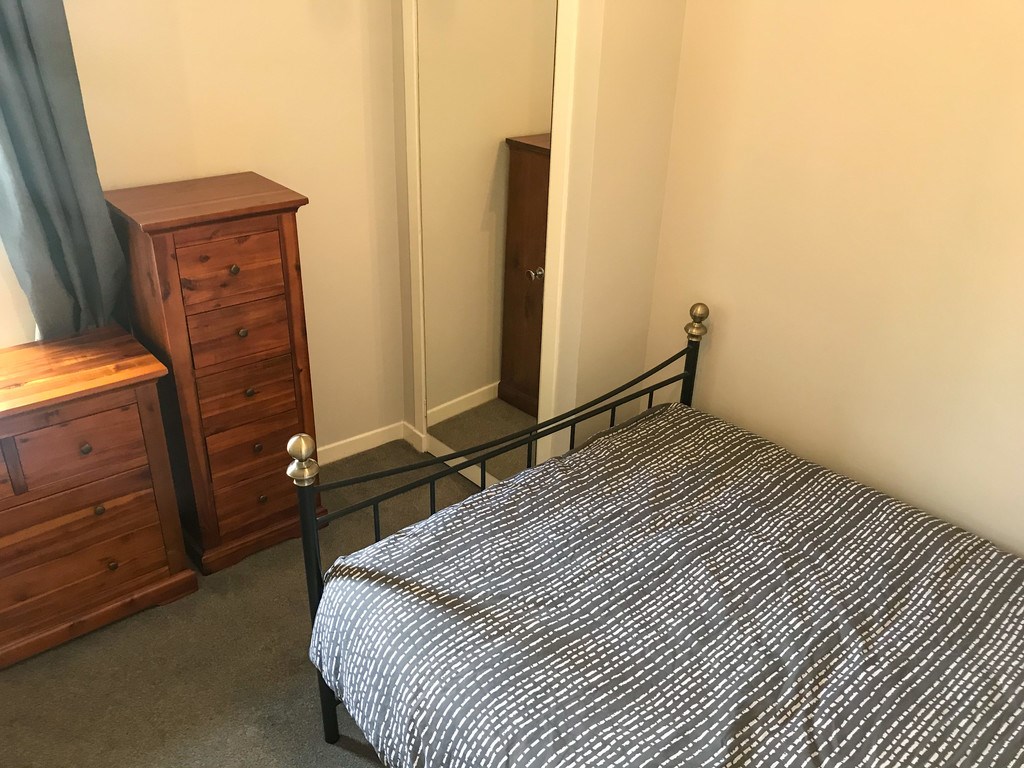 BEDROOM Comfortable double bedroom with built-in wardrobe. This room has neutral décor and is flooded with natural light from the large window.