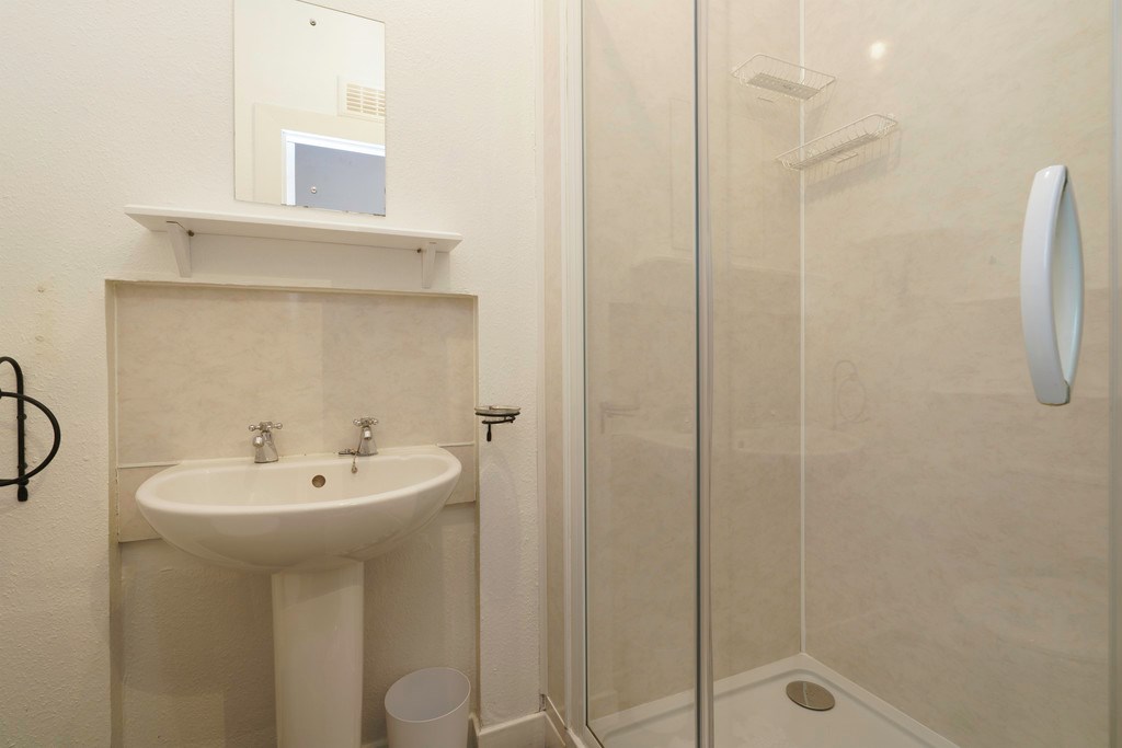 BATHROOM Beautiful bathroom which has been decorated in neutral tones. The bathroom benefits from a large walk-in shower enclose with electric shower, free standing toilet, and sink. Multiple shelving units provides a great amount of storage.