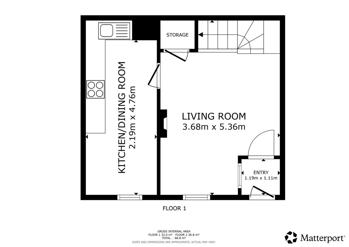 LIVING ROOM The living room for this property greets you with a homely and relaxed feel from the outset as you enter and is furnished with a pair of welcoming double seater sofas, glass coffee table and flat screen TV sitting upon a stylish fireplace. This room gives an overall feeling of calmness and comfort and is the ideal location to kick back and relax after a long day. This room features direct access to the upstairs via sleek staircase.