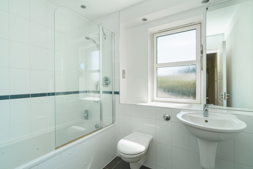BATHROOM Generously sized bathroom with modern decor. This rooms benefits from a shower over bath and white tiled surrounds.