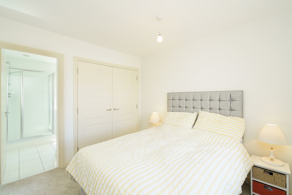SECOND FLOOR MASTER BEDROOM Beautiful master bedroom which spans the top floor. The master has been decorated in neutral tones and carpeted flooring. This rooms benefits from a large walk-in wardrobe and further integrated wardrobes are provided. The master en suit is great in size and includes a walk-in shower enclosure and a wall length of storage.