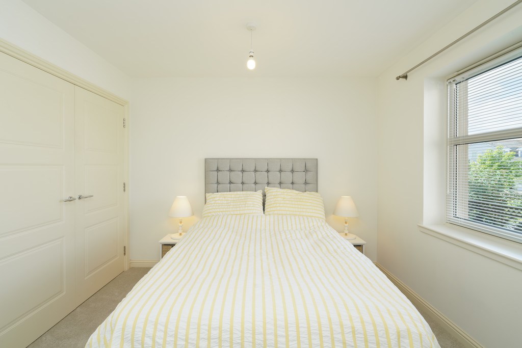 BEDROOM 2 A further large double bedroom which has a large window, neutral décor and plenty of integrated storage is provided by the wall's length of internal wardrobes. This room benefits from a large ensuit which has a separate shower cubicle and a wall hung sink and toilet.