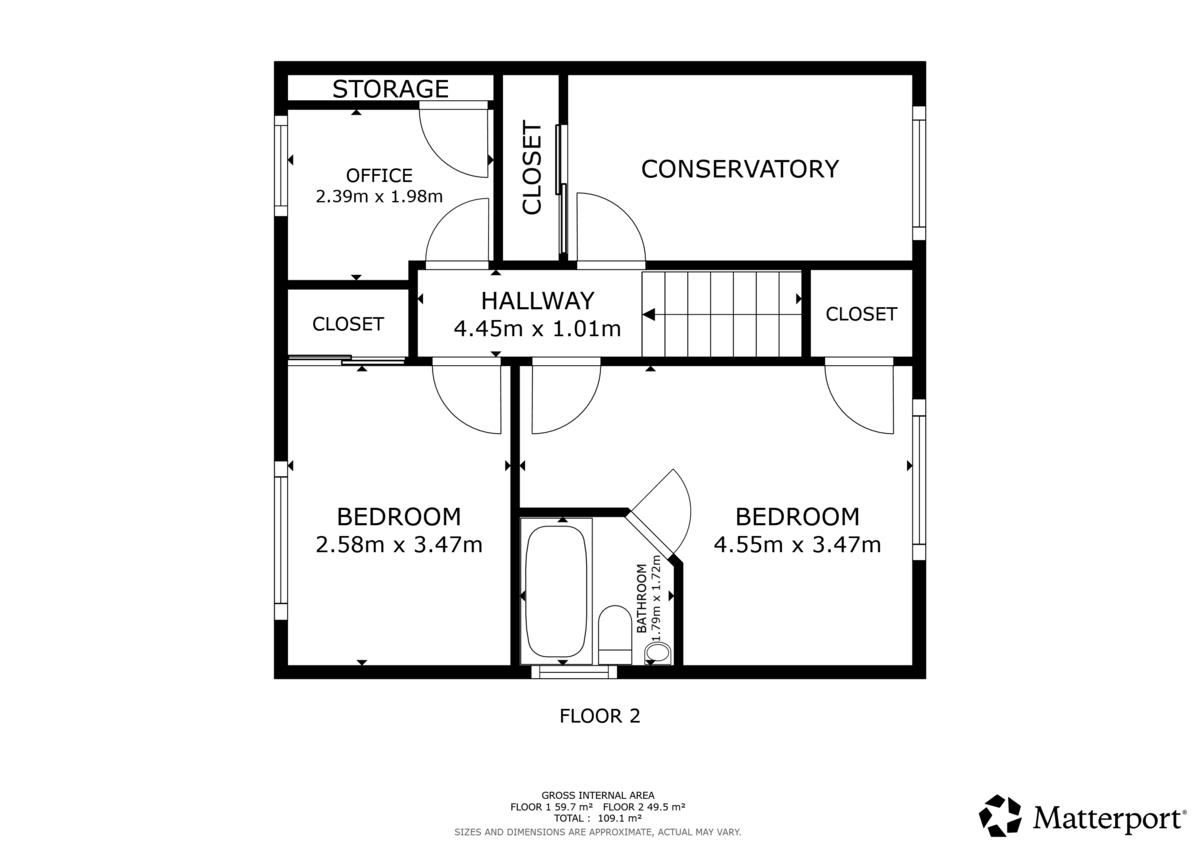 BEDROOM 3 The third bedroom of this property is located just to the back left as you reach the top of the stairs here, once again providing a clear and bright space through a large road facing window and possessing plenty of floor space for future furnishings.