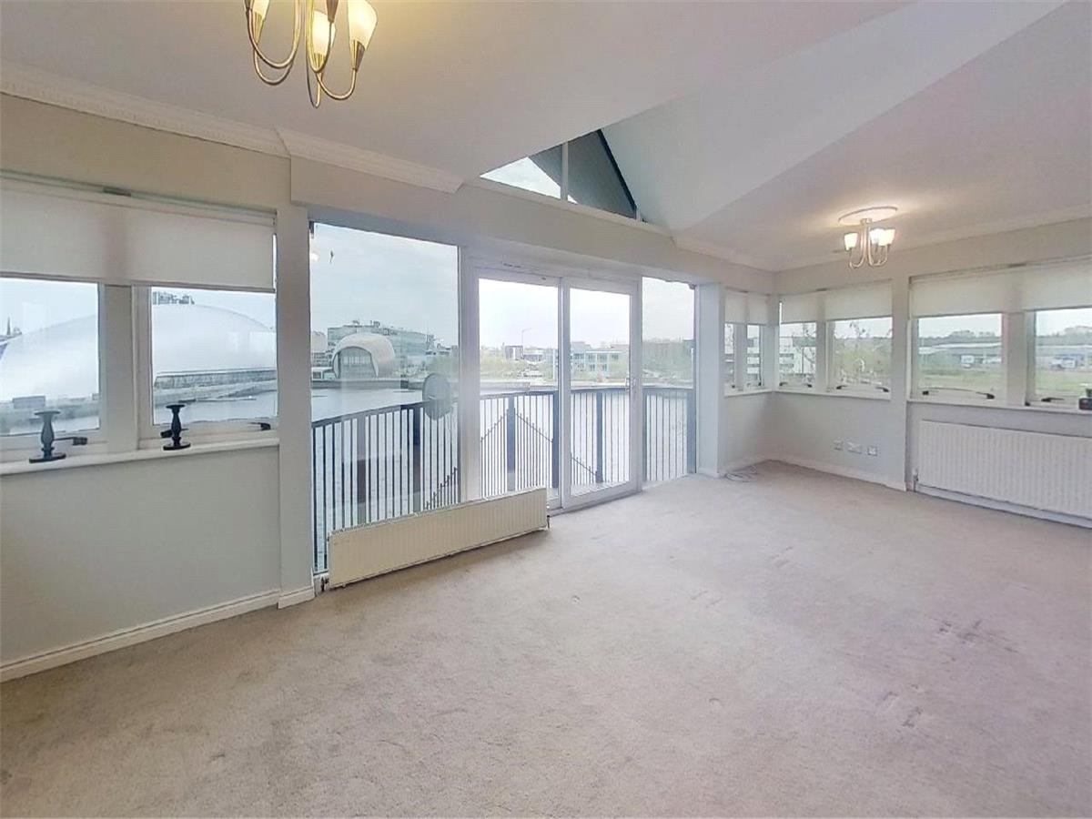 Duplex apartment with private balcony overlooking one of the city's most iconic and impressive views with aspects across the tranquil Canting Basin towards the science centre and Glasgow Tower.