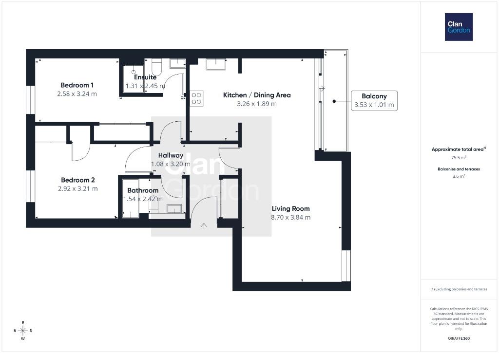 The property comprises of; large open plan living room and kitchen with ample separate dining space, 2 double bedrooms with fully fitted extensive wardrobes, 1 ensuite and further main bathroom with shower over bath. The property benefits from an allocated parking space, gas central heating, double glazing and ample storage throughout.