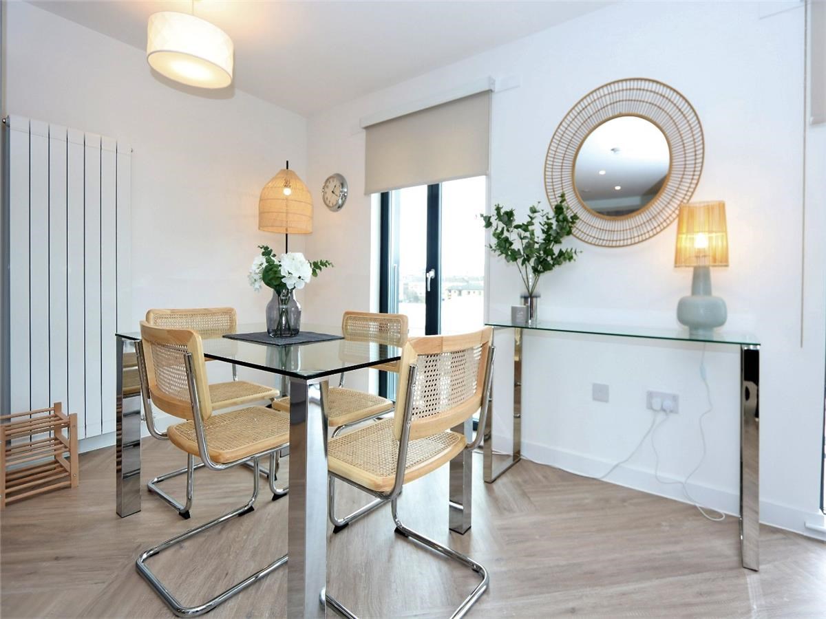 Internally, the accommodation consists of hallway with vast storage facilities and a utility cupboard, a superb, large bright lounge that is open plan to an L shaped kitchen with integrated appliances and offers a dedicated dining space. The Master bedroom benefits from fitted wardrobes, a private balcony and a fantastic en-suite shower room. There is a second double bedroom that also boasts fitted wardrobes. A further internal family bathroom with three piece suite with shower over the bath completes the accommodation.