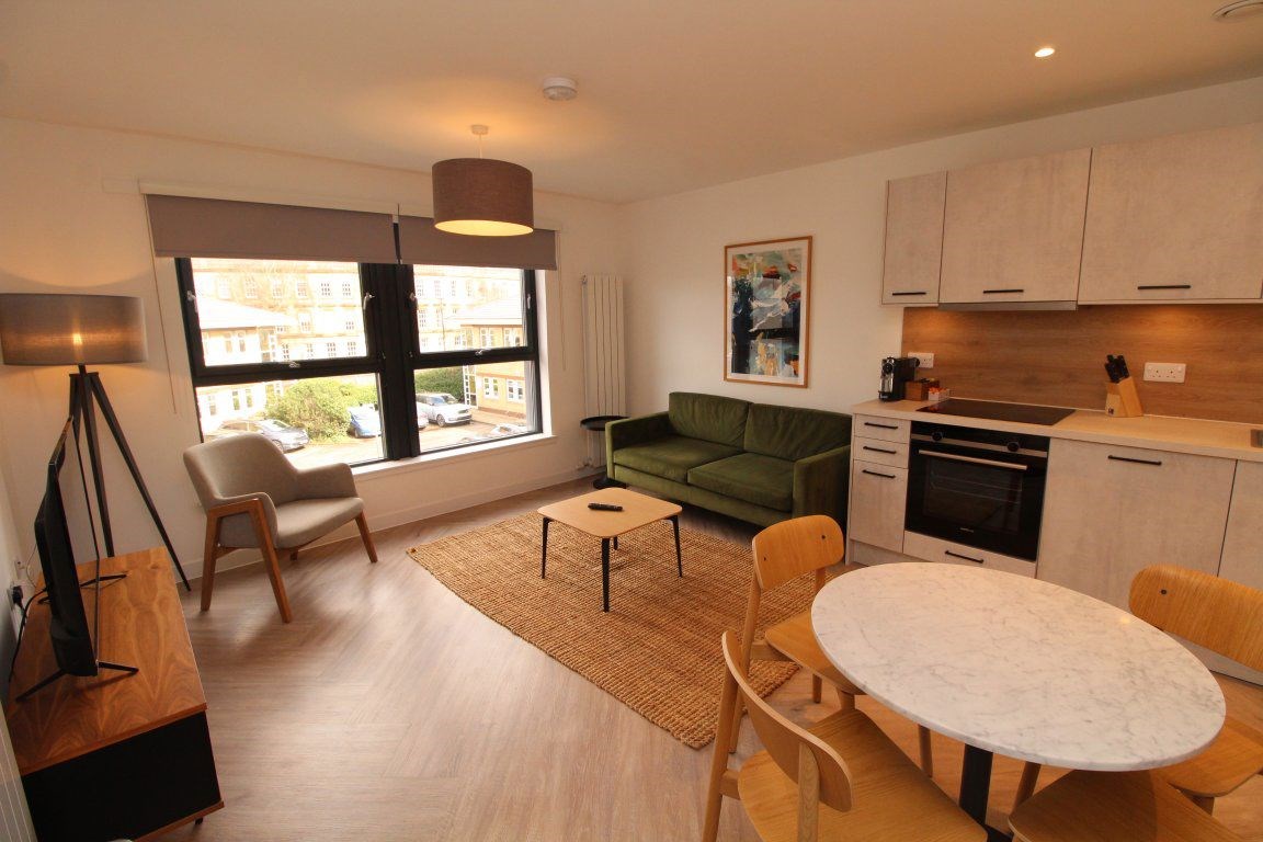 Stunning two bed fully furnished apartment in impressive modern Finnieston development ideally located close to numerous shops, bars, restaurants and transport links. No pets allowed.Exceptional 2nd floor accommodation comprising a welcoming entrance hallway with ample storage and utility cupboard with washer/dryer. There is a large, bright open plan living room with floor to ceiling windows and fully fitted high spec dining kitchen with appliances including integrated fridge/freezer, dishwasher, electric oven and induction hob. In addition, there is a large master bedroom with private balcony, fitted mirrored wardrobes and en-suite bathroom with walk-in shower as well as a second double bedroom and a smart 3 piece bathroom with shower over bath. Further features include stylish décor and furnishings throughout, high performance electric heating, double glazing, secure entry, lift access, beautifully maintained communal internal garden and one private resident parking space.Deposit £1,495.Council Tax band E and EPC rating B. Available nowLandlord registration 1795588/260/13012Letting Agent Registration no: LARN1811033