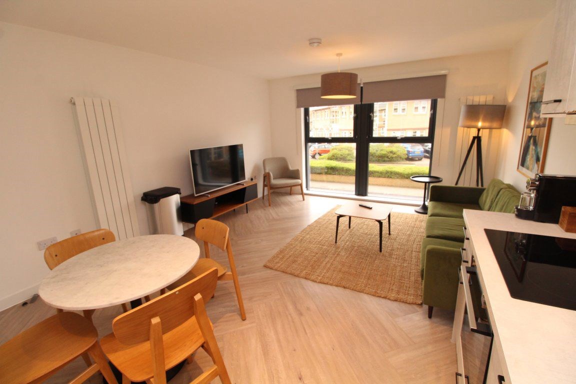 Stunning two bed fully furnished apartment in impressive modern Finnieston development ideally located close to numerous shops, bars, restaurants and transport links. No pets allowed.Exceptional 1st floor accommodation comprising a welcoming entrance hallway with ample storage and utility cupboard with washer/dryer. There is a large, bright open plan living room with floor to ceiling windows and fully fitted high spec dining kitchen with appliances including integrated fridge/freezer, dishwasher, electric oven and induction hob. In addition, there is a large master bedroom with fitted mirrored wardrobes and en-suite bathroom with walk-in shower as well as a second double bedroom and a smart 3 piece bathroom with shower over bath. Further features include stylish décor and furnishings throughout, high performance electric heating, double glazing, secure entry, lift access, beautifully maintained communal internal garden and one private resident parking space.Deposit £1,495.Council Tax band E and EPC rating B. Available nowLandlord registration 1795588/260/13012Letting Agent Registration no: LARN1811033