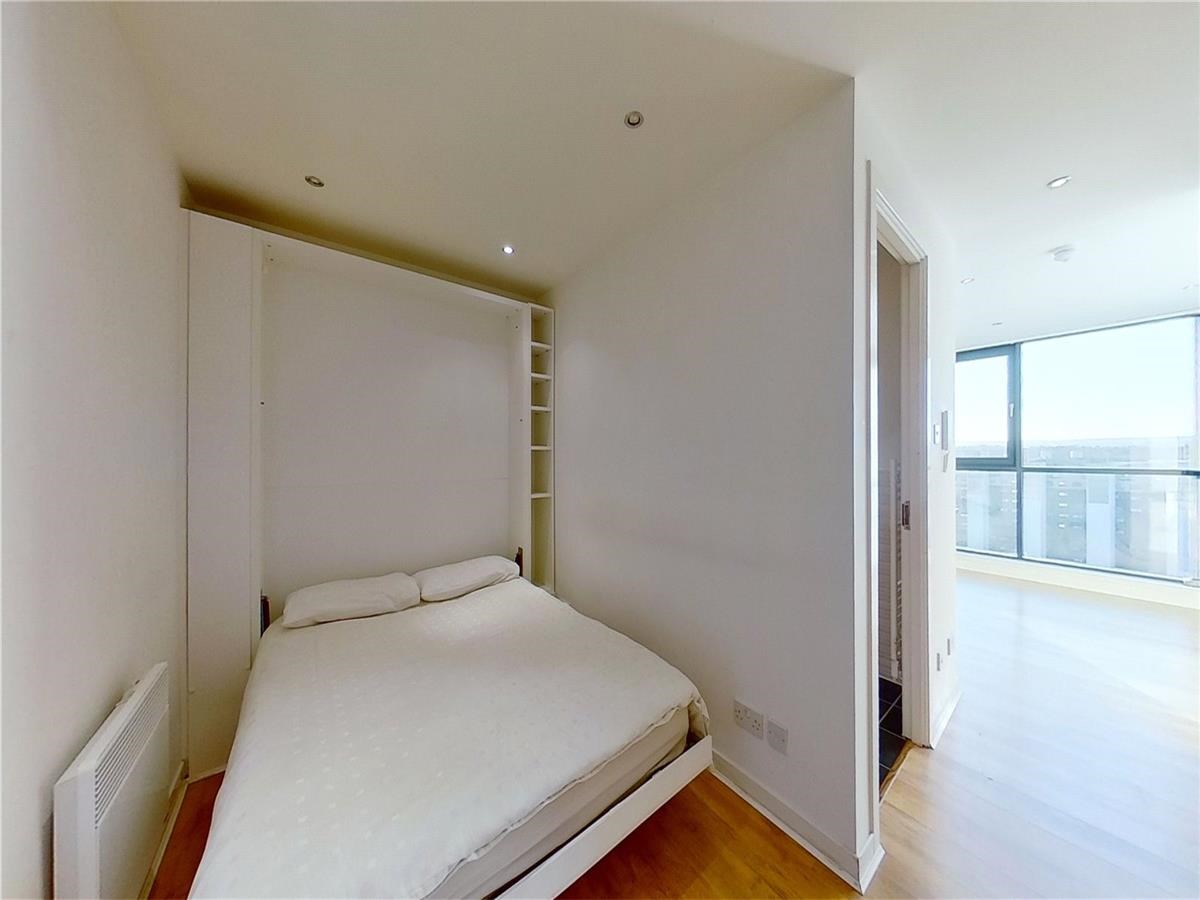 The space then opens seamlessly into the south-facing lounge, where an expansive window offers spectacular views across the River Clyde and allowing for an abundance of natural light. Adjacent to the lounge is a compact yet well-equipped L-shaped kitchenette, complete with all appliances and a good range of cabinet space. The property is completed by a sleek, modern bathroom featuring stylish tiling and a generously sized shower enclosure. The property further benefits from secure door entry system, lift access to all floors and electric heating.