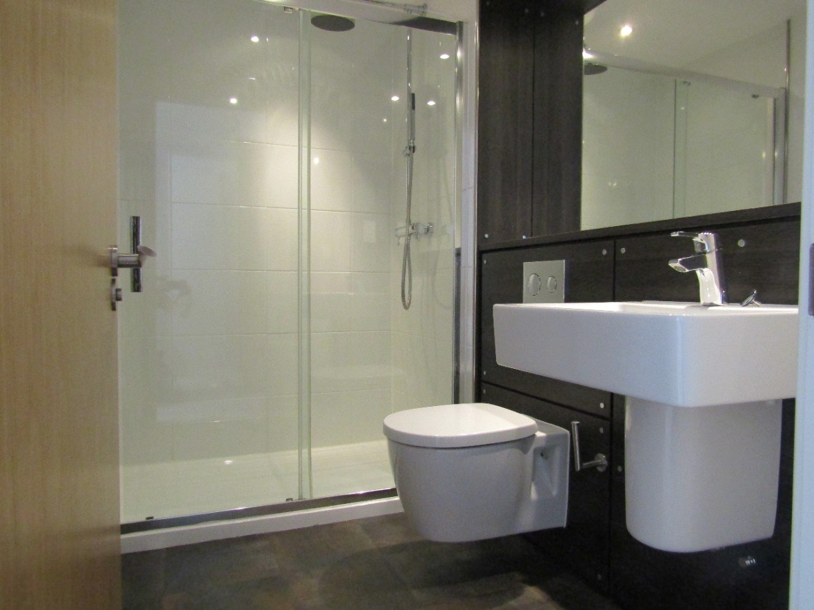 Furnished Accommodation:- City Centre 2 bedroom flat in stylish development. The property, situated on the third floor, comprises of: 2 double bedrooms with fitted wardrobes, 1 en-suite shower room, family bathroom with shower over bath, utility room with washing machine and open plan living room/kitchen. The modern kitchen benefits from: oven, microwave, hob, tall fridge/freezer, and dishwasher. The property further benefits from: balcony, gas central under floor heating, lift, secure door entry, double glazing, and option to rent a parking space.
