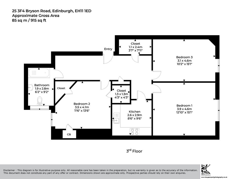 Recently redecorated, 3 bedroom, HMO flat located on Bryson Road which is in the sought after area of Fountainbridge. Bruntsfield, Tollcross and the Meadows are all within walking distance, and Slateford Road and Dalry Road are also nearby. The local area offers a number of amenities including shops, bars, restaurants, cinema screens and bus links. There are excellent transport links on offer and the flat is well placed for access to both Edinburgh University and Napier University.