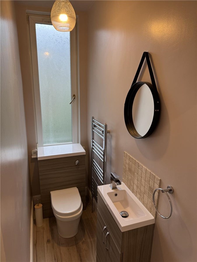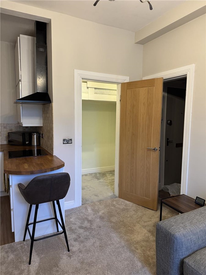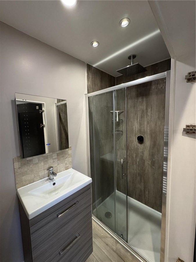 The generously sized double bedroom includes a built-in wardrobe as well as space for additional furnishings, while the sleek shower room is finished with a contemporary three-piece suite and vanity unit.