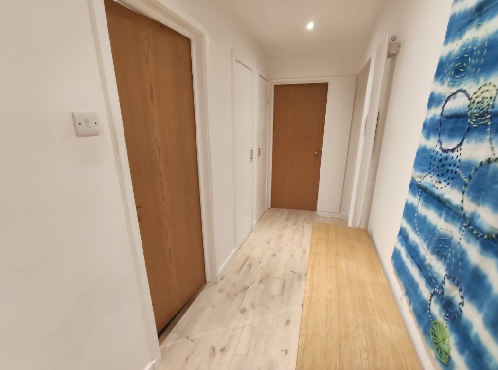 Bedroom number two: This also has front facing double-glazed window, laminate flooring, ceiling light point and built-in wardrobes. It too has a wall-mounted hot water electric radiator.