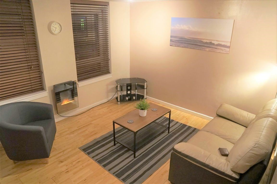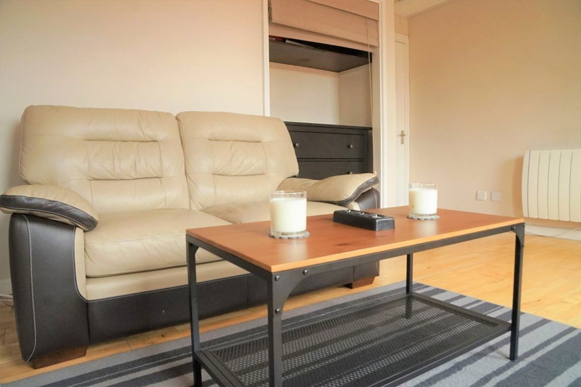 The property is secured with a controlled entry to communal hall with lift and well-kept stairwell. The accommodation has a welcoming hallway with storage, attractive living space with fitted cupboard and splendid views across the west end to distant hills, the separate fitted kitchen has a good range of floor and wall mounted cupboards plus appliances including electric oven and hob, washing machine, and fridge/freezer. The bedroom is double in size with cupboard space and a there is a stylish and modern bathroom with shower cubicle. The property has an allocated parking space in the off street car park.