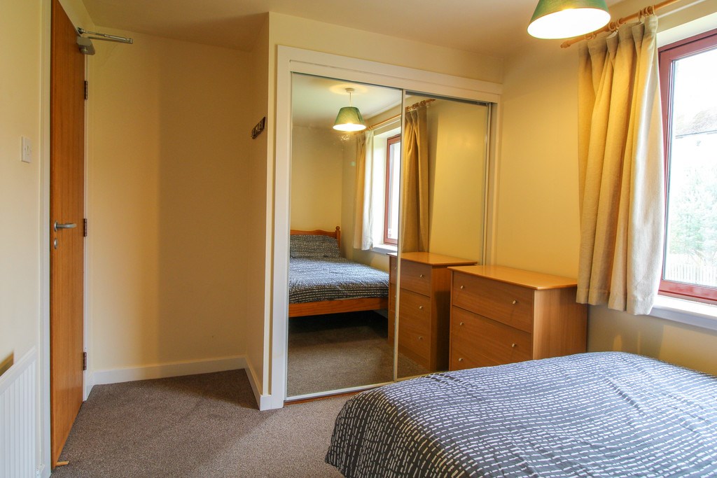 BEDROOM 3 Double bedroom with double built-in mirrored wardrobe and desk perfect for students or professionals working from home.