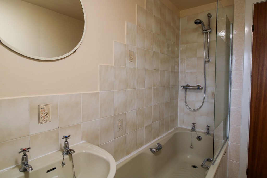 BATHROOM Bathroom with three-piece suite and shower over the bath.