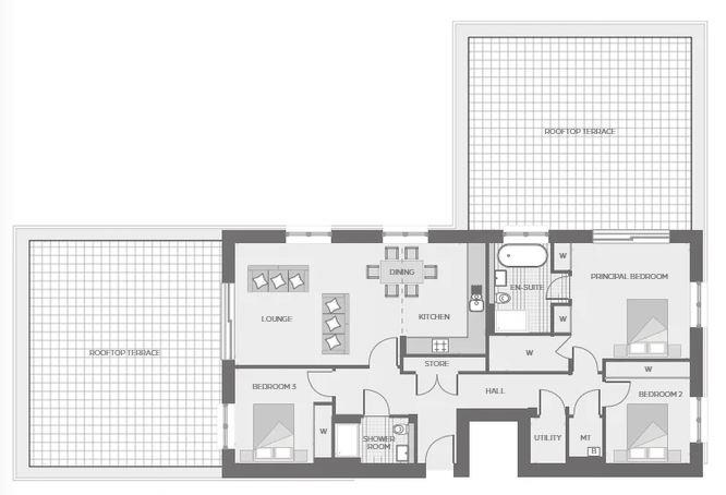 The property is finished to an exacting standard and specification and internally comprises of a welcoming hallway with ample storage and a utility room off. The hallway leads through to a superb, large bright lounge that has room for dining and is open plan to a high end fully fitted kitchen with integrated appliances. The lounge also provides access to a private and vast roof terrace. The master bedroom boasts a large walk in wardrobe, along with fitted wardrobes and also benefits from a fantastic fully tiled en-suite bathroom boasting a four piece suite. The master bedroom also leads out onto a second large private roof terrace. There are two further double bedrooms, both benefitting from fitted wardrobes and one with access to the roof terrace.