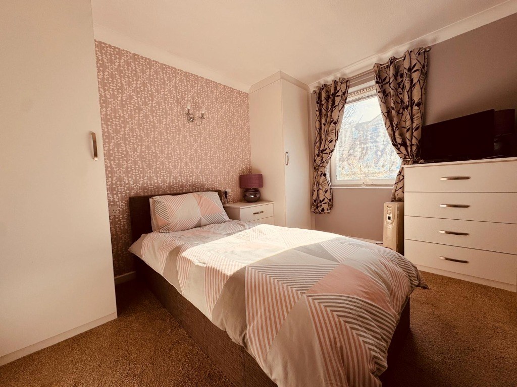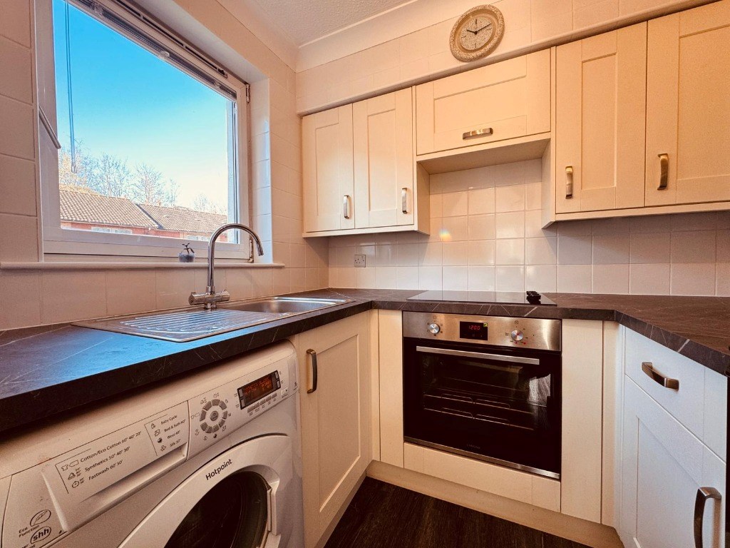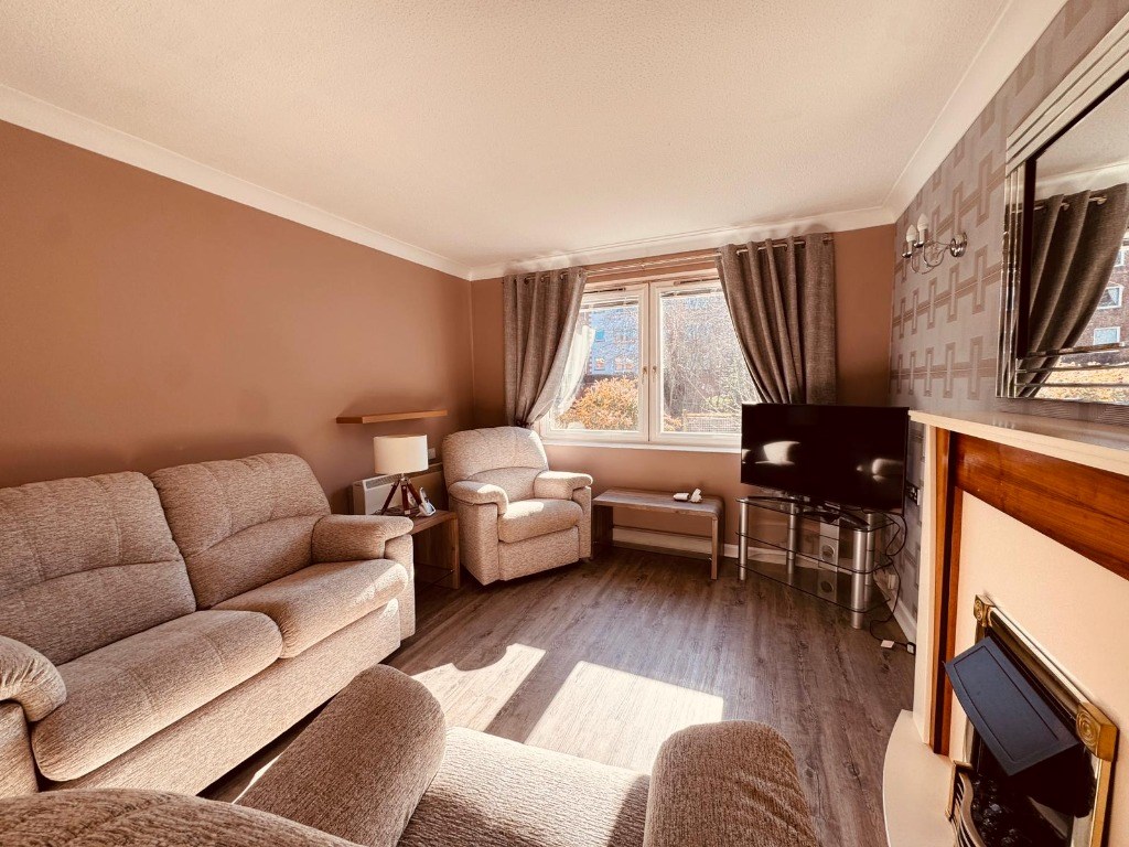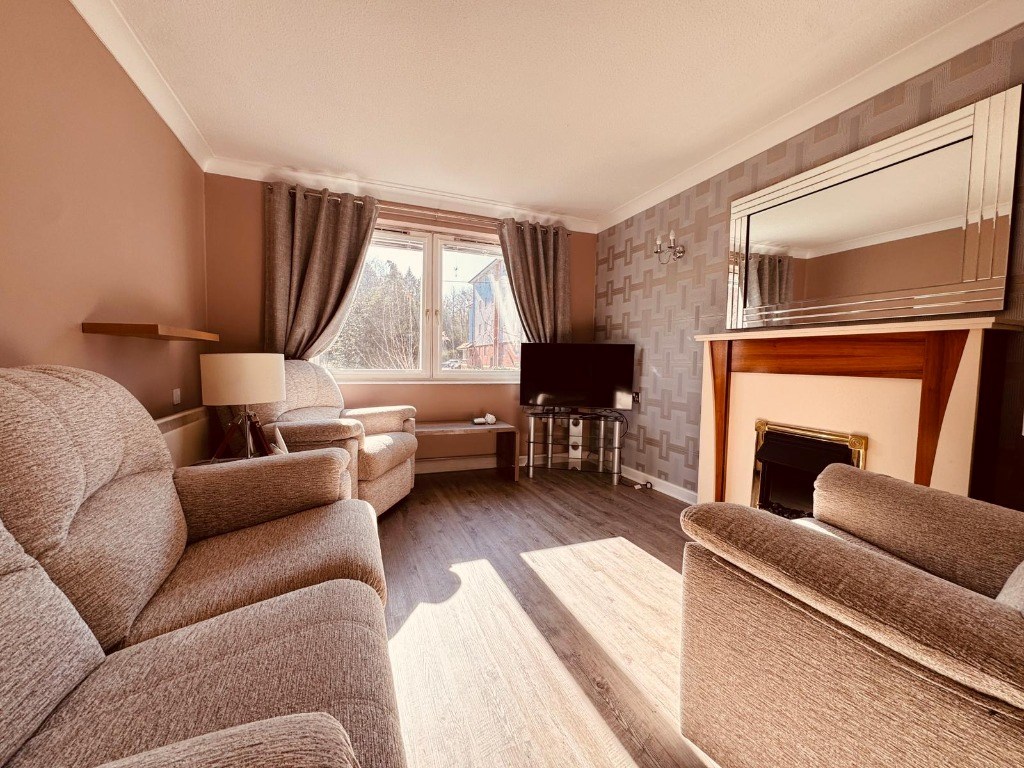 Positioned on the ground floor, the apartment is well presented throughout and offers a thoughtfully designed layout. The accommodation comprises a welcoming entrance hallway with useful storage, a bright and spacious lounge featuring a focal-point fireplace, a well-proportioned bedroom with fitted wardrobes, a fitted kitchen, and a modern shower room.