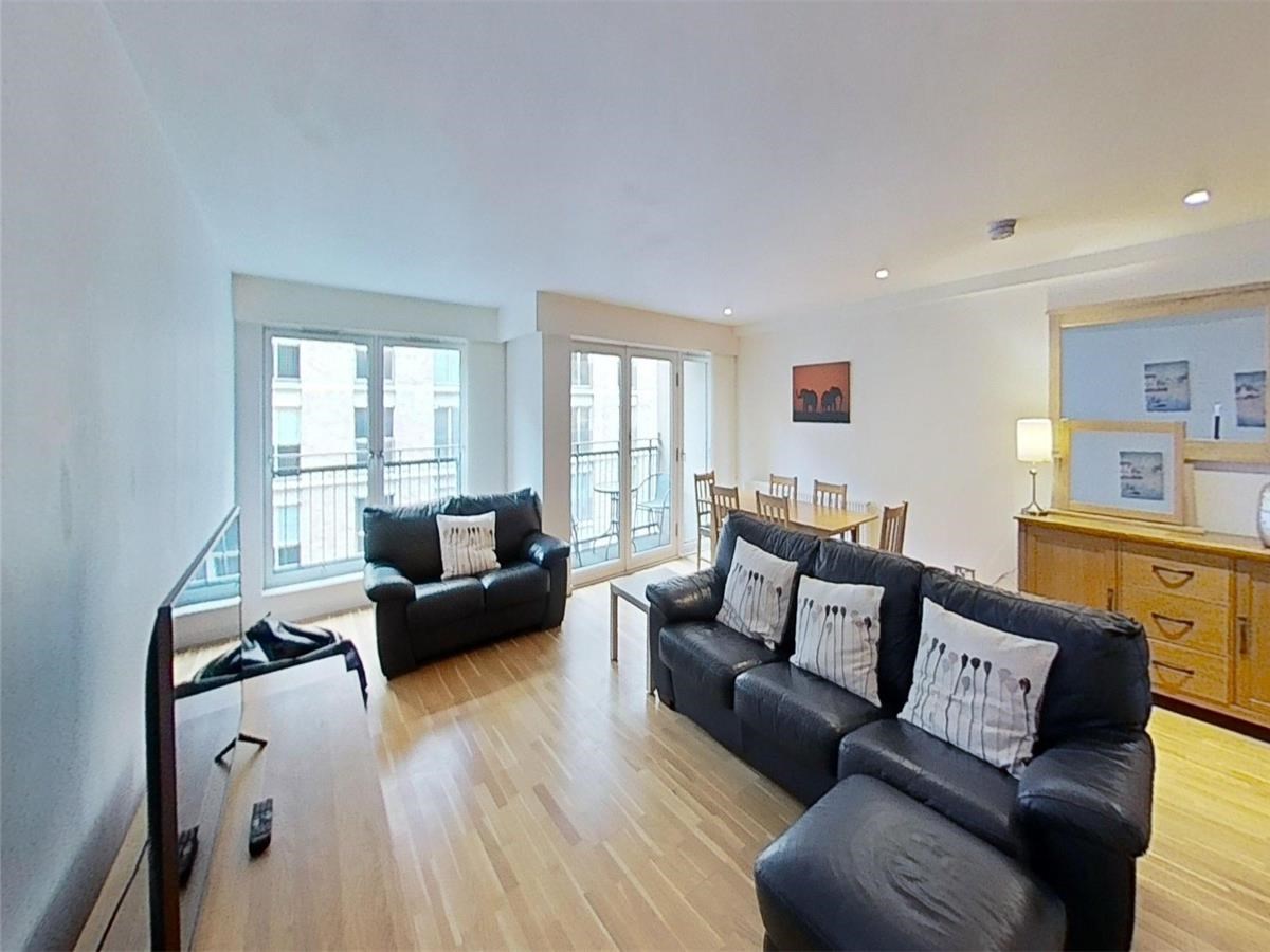 The accommodation on offer comprises a welcoming entrance hallway with storage and utility cupboard housing a washer / dryer, spacious open plan lounge with dining area and private balcony with seating area, as well as fitted kitchen with integrated appliances including gas hob, electric oven, dishwasher and under counter fridge and freezer, two good sized double bedrooms, both with fitted wardrobes and Parisian balconies to the rear overlooking a communal courtyard, master en-suite shower room with double shower enclosure and mains shower and family bathroom with white three piece suite and mains shower over the bath.