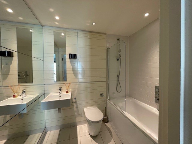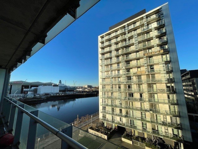The internal accommodation extends to a reception hallway, 2 double bedrooms including wardrobe storage and en-suite shower room. Additionally, a well appointed, main family bathroom with bath + shower and an open plan lounge with kitchen area. The property is completed with a private balcony area leading off from the lounge giving open views to the river Clyde.