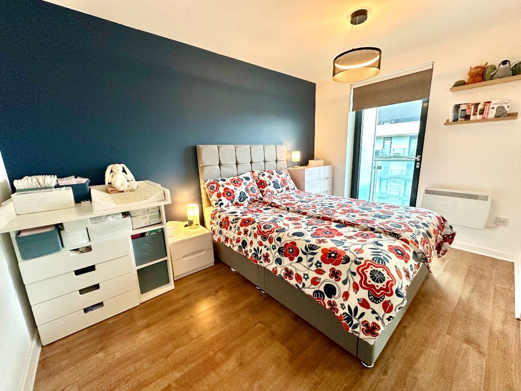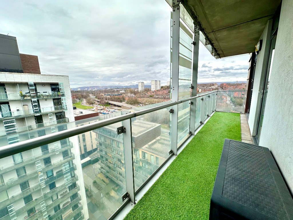 This modern high spec property is entered into via secure fob entry system into the well maintained communal entrance hallway which features two lifts and the private post boxes for all apartments. Internally the flat has a hallway with storage/utility cupboard which also houses the washing machine and leads to all rooms. There is a spacious open plan lounge / dining area / kitchen featuring a modern fitted kitchen with integrated appliances including under counter fridge, under counter freezer, dishwasher, ceramic hob and electric oven. This room has stunning views over the Glasgow and the River Clyde and also gives access out onto the large private balcony which is perfectly situated for watching the sun set over Glasgow. There are two double bedrooms, the main bedroom with fitted wardrobes as well as a modern en-suite bathroom and both bedrooms also give access out onto the private balcony. Completing the accommodation is an internal main shower room with modern white ceramics and walk-in shower with mains powered shower.